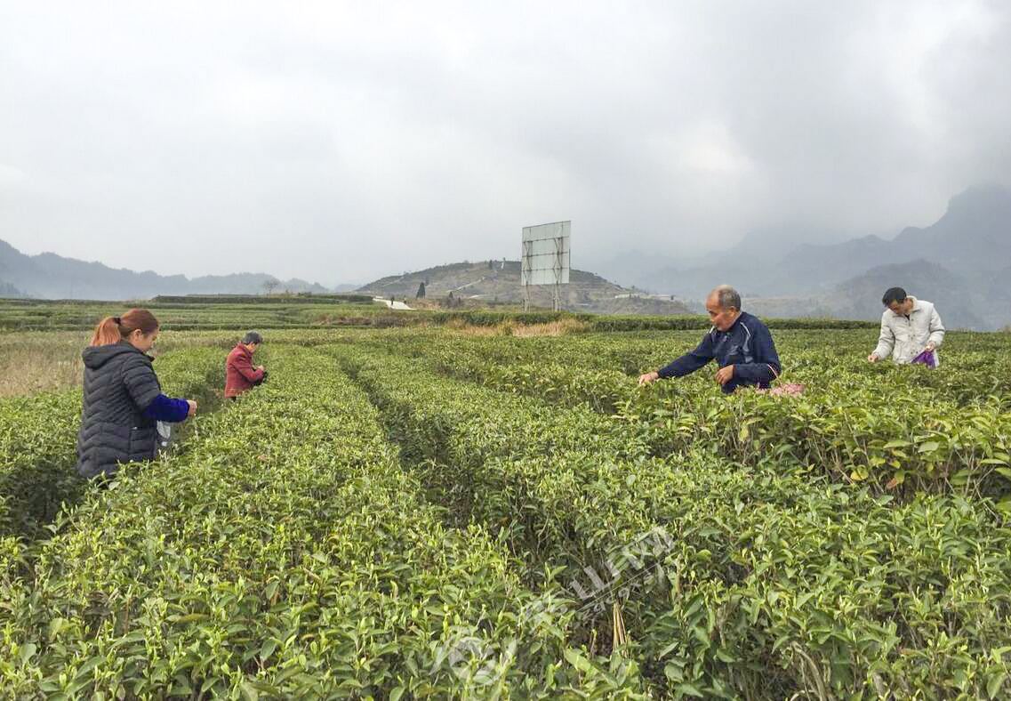 14日,在洪安鎮猛董茶園里,同樣是一派熱鬧繁忙的景象。數十名村民背著背簍、提著竹籃、布袋有說有笑,歡暢的歌聲隨風飄蕩,靈巧的雙手在茶樹上翻飛,一掐一放,一片片嫩綠的芽尖兒就被輕輕收入囊中……