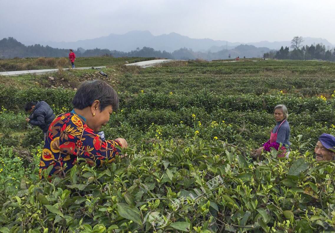 經數年經營,山坡變梯田,荒山變茶園。漫山遍野的茶樹郁郁蔥蔥,成為山村里一道美麗的風景。茶園開始與村民息息相關,一點點改變著人的生活。有的村民將自家茶葉采摘下來之后賣給合作社,平時農閑的時候還可以在合作社看管茶園賺取50元一天的務工費。村民舒小妹每天一大早就跟著村里的其他姐妹一起上山采茶,按斤賺取工錢,“以前天天在家閑著沒事做,也沒什么收入,現在不僅流轉土地每年有收益,我們每天還可以到茶園來幫工,心里覺得充實多了,現給我們45元一斤。”