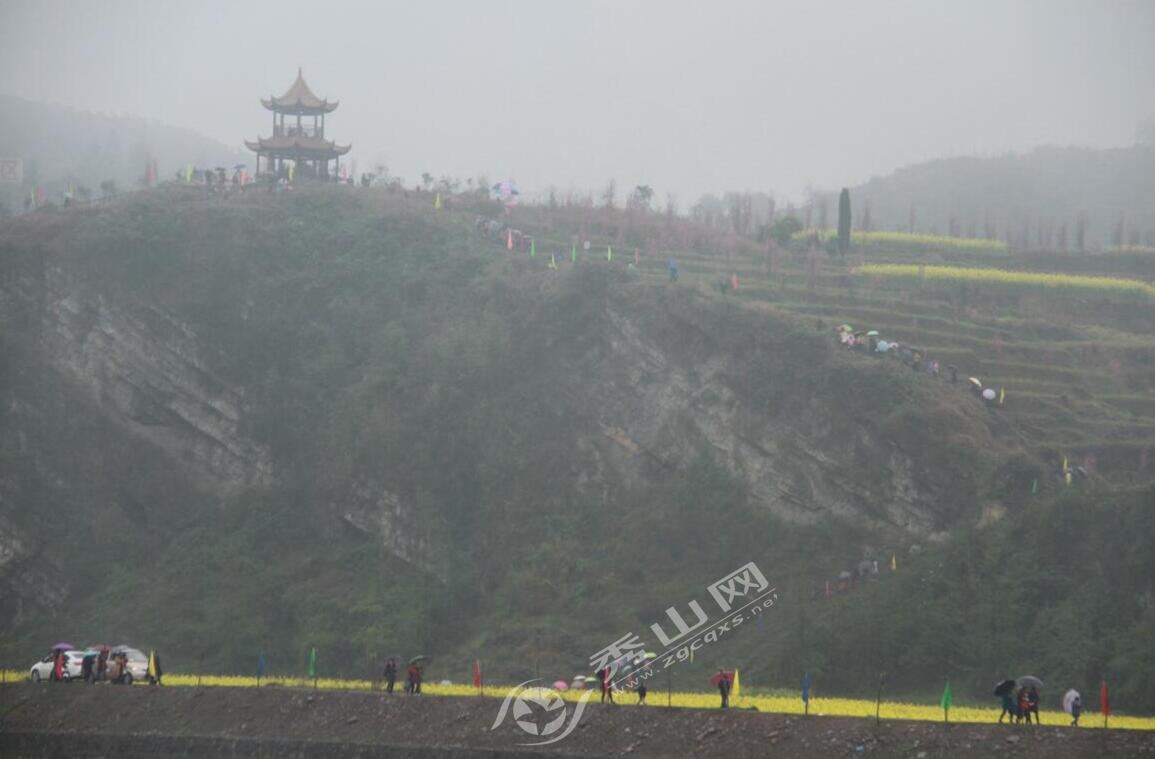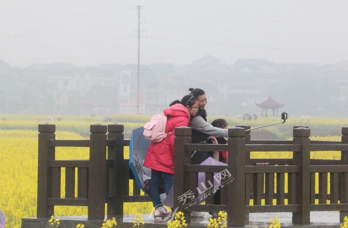 欣賞完精彩的節目表演,游客們還暢游萬畝金色花海,感受芬芳四溢;品嘗各種特色小吃,一飽口福;登上獅子山,一覽“龍鳳呈祥”及千米油菜花五彩大道的風采……淅瀝瀝的春雨,澆不滅他們高漲的熱情。