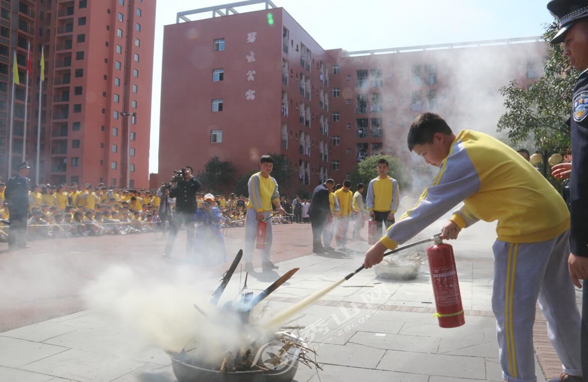 光說不練假把式,講解完理論知識,現場還進行了消防滅火演練,民警首先向學生講解了干粉滅火器的各部分名稱及使用方法,然后讓學生在實際操作中學會如何使用干粉滅火器進行滅火。