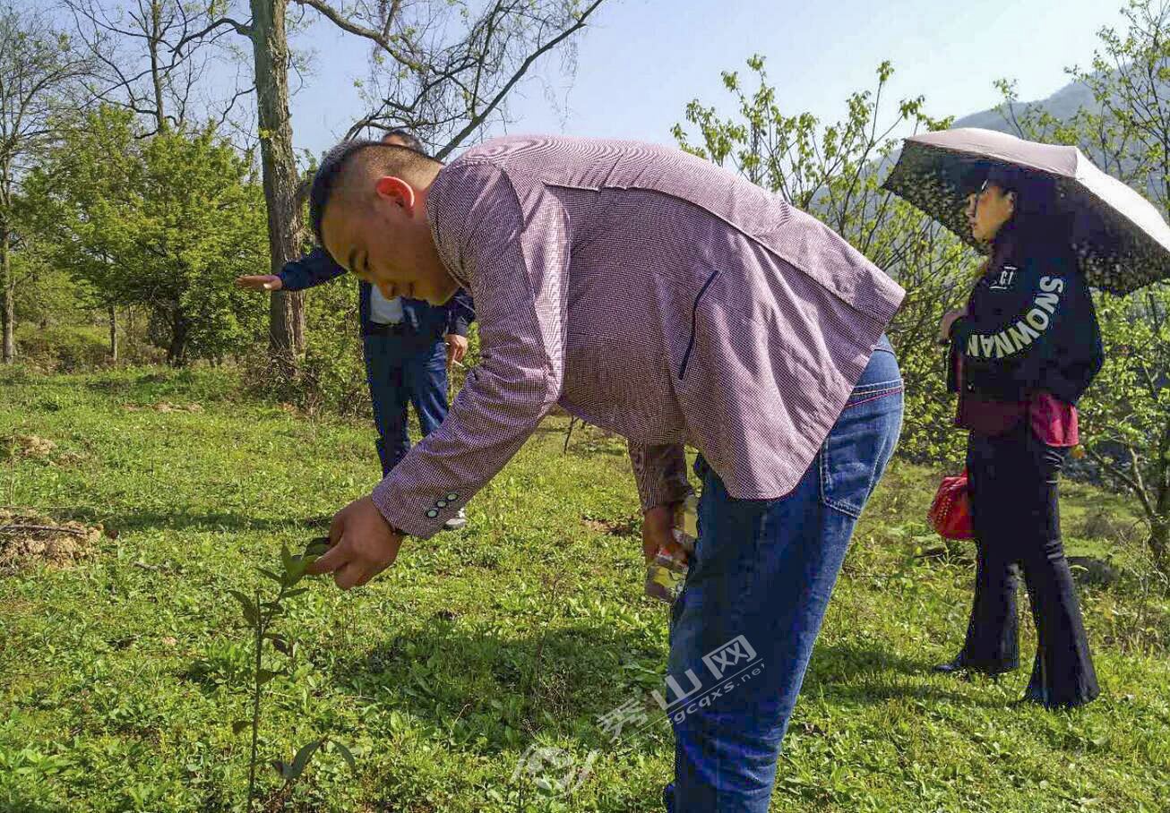在熱水塘村、小浩村油茶種植基地現(xiàn)場(chǎng),指導(dǎo)組對(duì)新栽油茶株行距、土地整治、除草情況提出意見建議,要求盡快對(duì)2016年冬至2017年春已管護(hù)的油茶繼續(xù)追肥、除草。