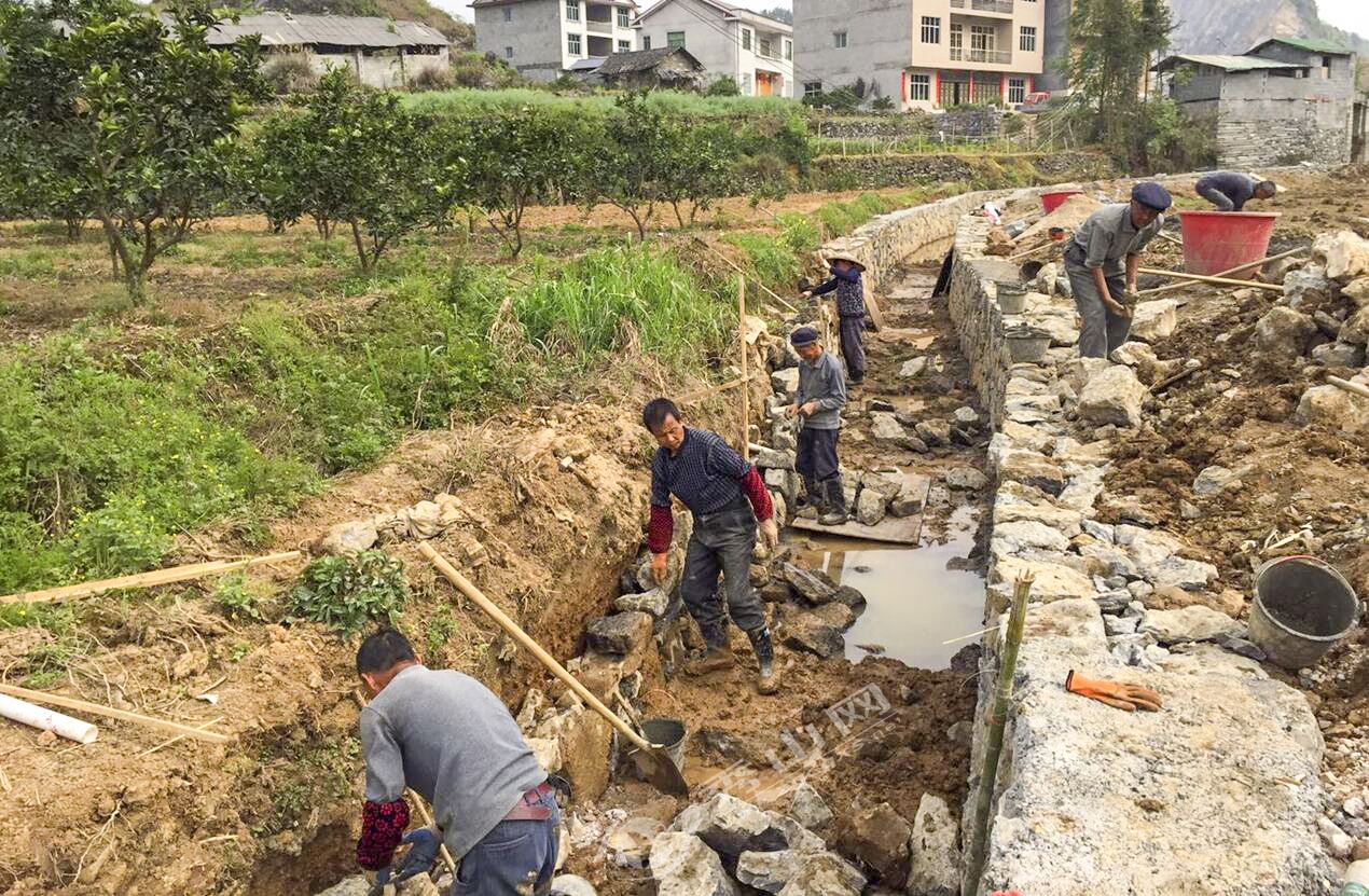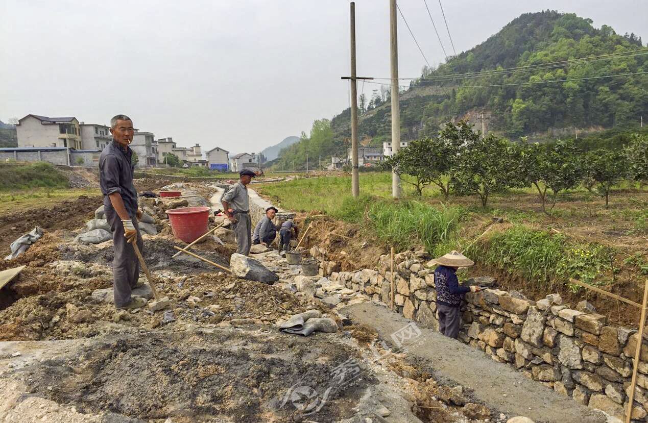 “之前,這是一條河沙堰,溝不通、渠不淌、地不平、灌溉難,一遇旱災,莊稼很難有好收成。每到農田灌溉的季節,村民有時候經常爭水用。現大家都非常樂意投工投勞來修這條堰渠,修好后,咱們貴措組、老力組的86戶村民300多畝農田、2000余畝臍橙用水就有保障了。”貴措居委會黨支部書記覃光成介紹,除了這條快完工的水渠外,附近溜沙村亦將修通從茨竹水庫接來的供水管網,均是由政府投資興建的惠農水利工程。