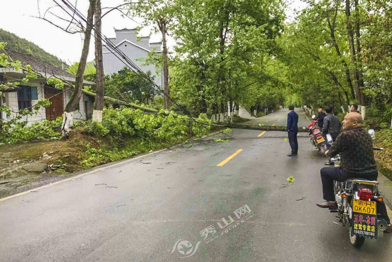 秀山網訊 4月13日,國道319線雅江鎮雅江居委會馬道址組處一棵行道樹被大風刮倒,阻斷交通。得知情況后,雅江鎮第一時間趕到現場,維持交通秩序,同時聯系相關部門,清除“攔路”大樹,交通很快恢復。