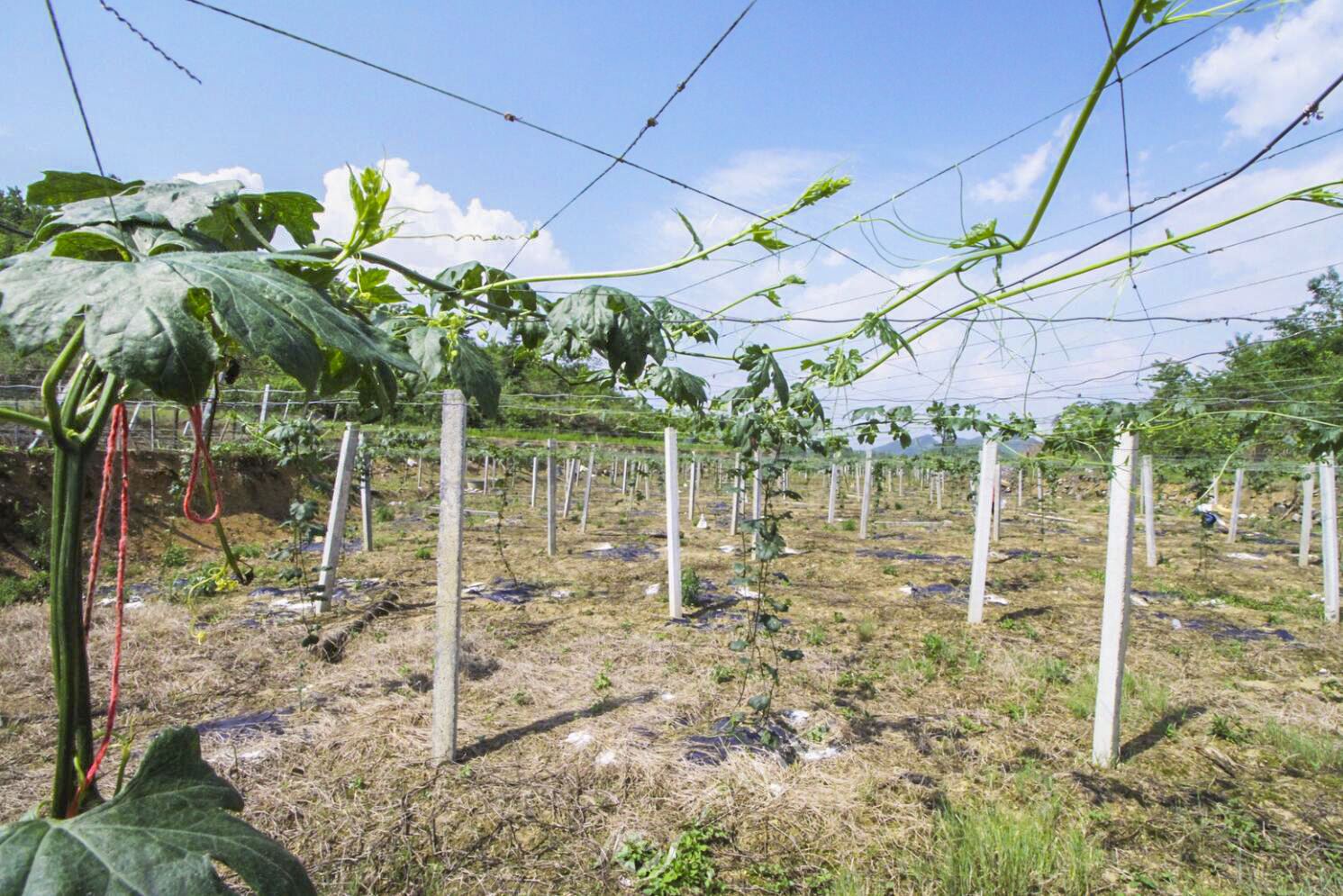 秀山網(wǎng)訊 5月的秀山,已是驕陽似火。溶溪鎮(zhèn)回星村180畝吊瓜基地里,瓜苗迎著烈日攀爬蔓延,終將繞滿整個架子,開花結果。