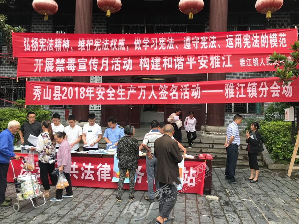 秀山網訊 今年6月是第十七個全國“安全生產月”,為了營造轄區群眾關注安全生產、自覺維護轄區安全的良好氛圍。6月12日,雅江鎮安監辦、派出所、綜治辦、食藥監、司法所、消防隊聯合組織開展“安全生產月”萬人簽名和安全生產宣傳教育“七進”活動。