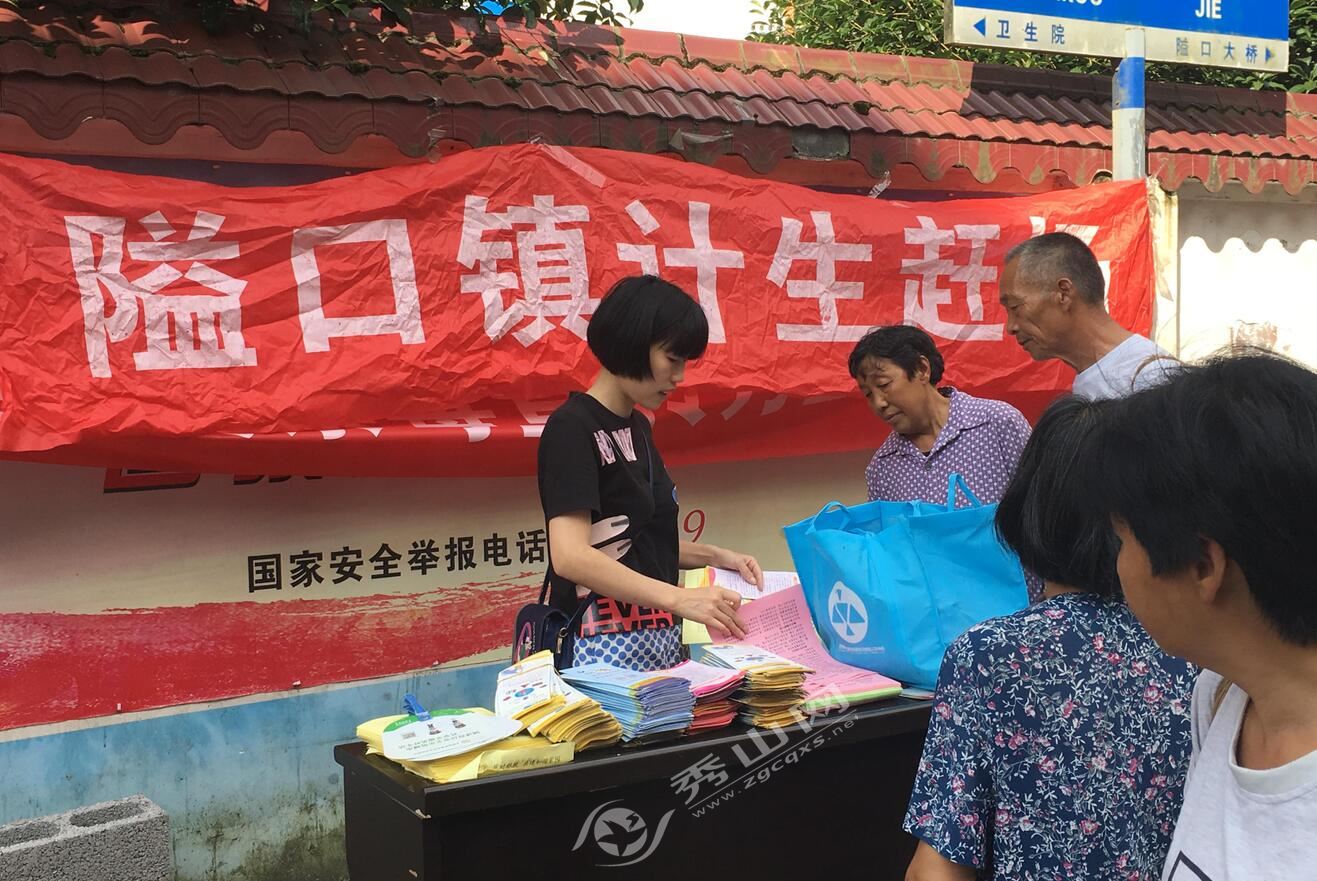 秀山網訊 6月26日,隘口鎮計生辦工作人員手拿《把健康帶回家》、婦幼保健宣傳單、宣傳畫報等系列宣傳資料,向村民耐心解讀疾病預防相關知識及獎勵扶助等相關政策,發放宣傳環保袋等計生宣傳品。