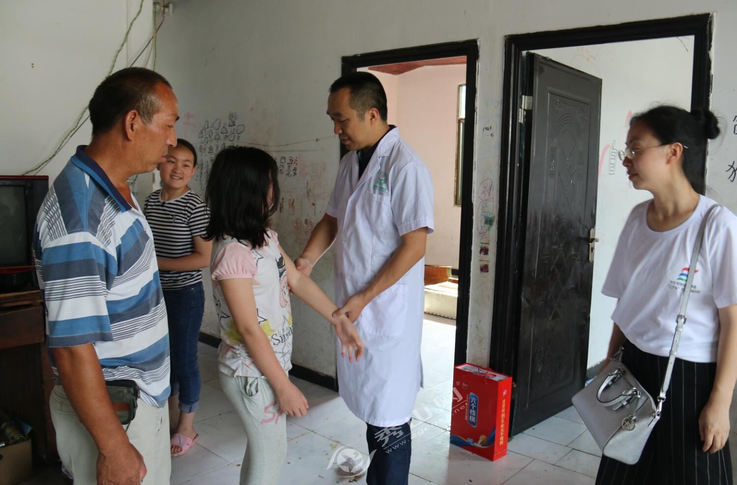 秀山網訊 8月9日下午,秀山團縣委聯合重醫附二院白求恩志愿服務隊、縣人民醫院團委開展醫療志愿扶貧活動,分別到秀山烏楊街道烏楊社區、涼亭村,上門為建卡貧困戶家庭的腦癱患兒白佑成、癲癇患兒張曉潔重病患兒診斷病情,并帶著牛奶玩具等慰問品,對我縣的兩戶病困家庭進行了走訪。