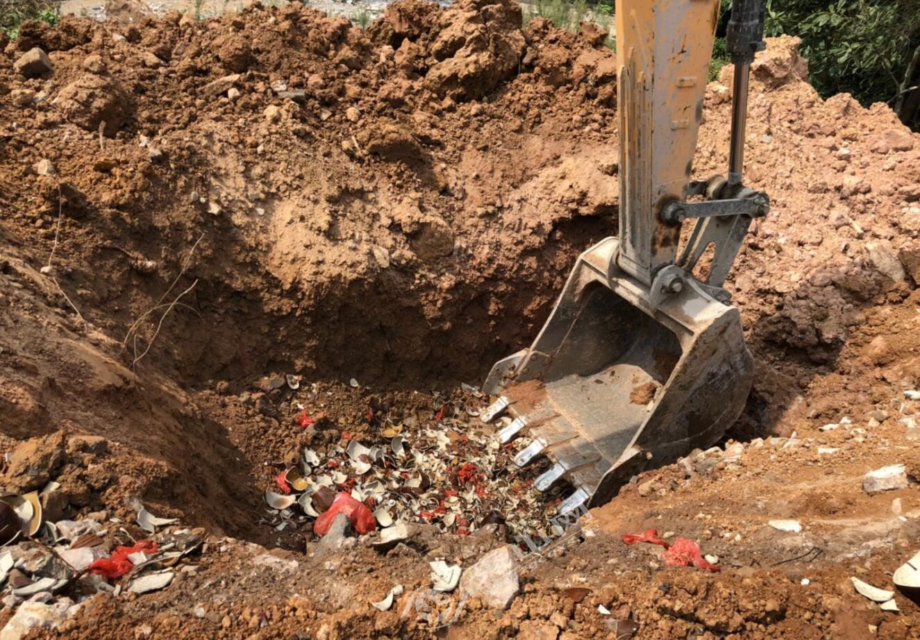 秀山網(wǎng)訊 為消除食品安全隱患,徹底的杜絕食品安全事故發(fā)生,8月21日,中和街道對物流園區(qū)已征土地中埋藏的3000余斤白酒進行銷毀。