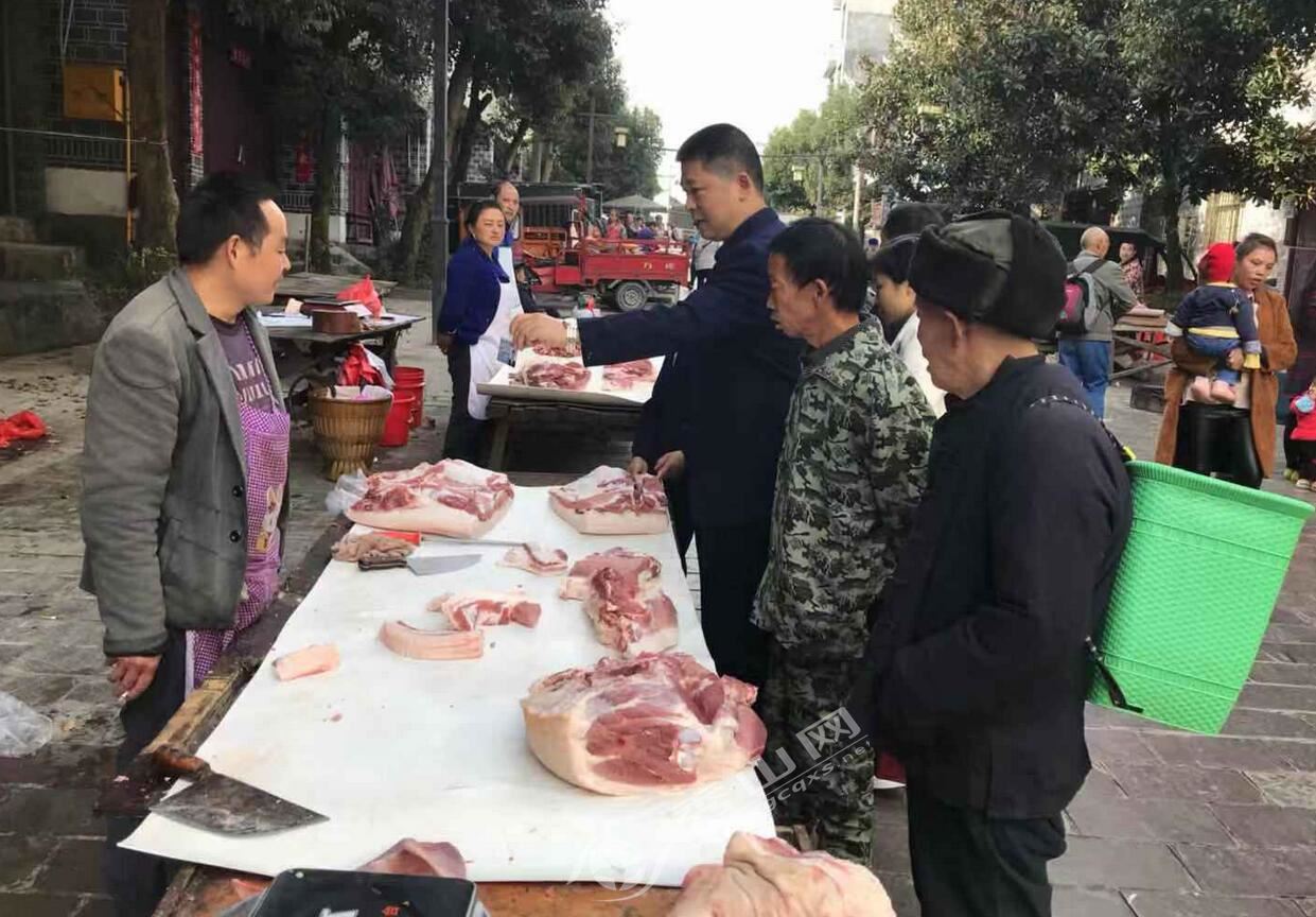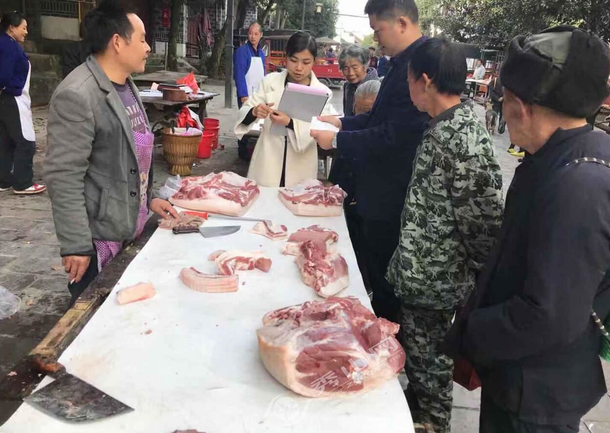 秀山網訊 為切實加強生豬肉市場質量安全監管,維護生豬肉市場消費安全,嚴厲打擊“白板肉”和病死豬肉上市銷售的違法行為,防止疫區豬肉流入市場,確保廣大人民群眾吃上“放心肉”。11月1日,雅江鎮食藥監所利用集鎮趕場日對生豬肉銷售市場開展專項檢查。