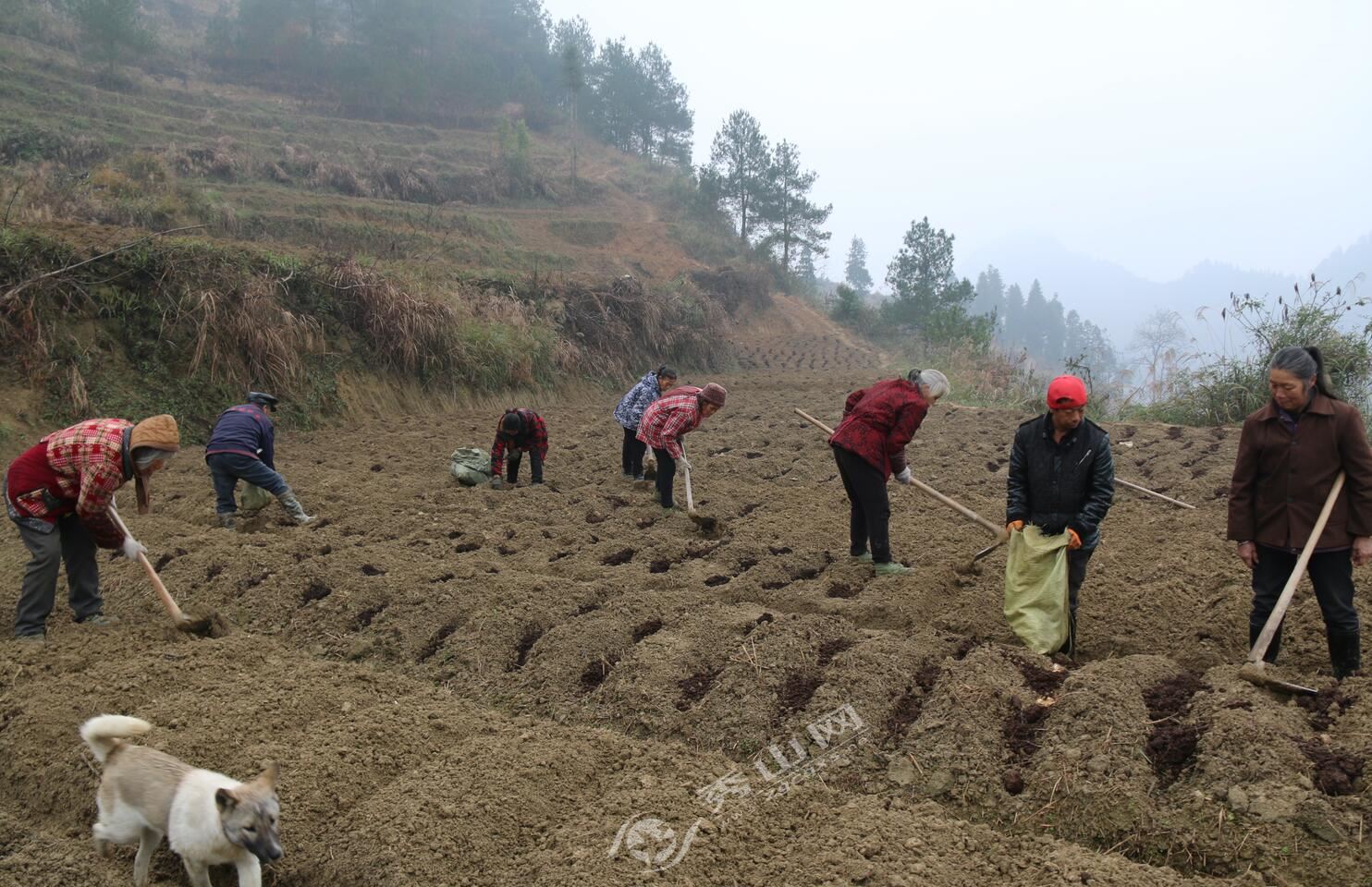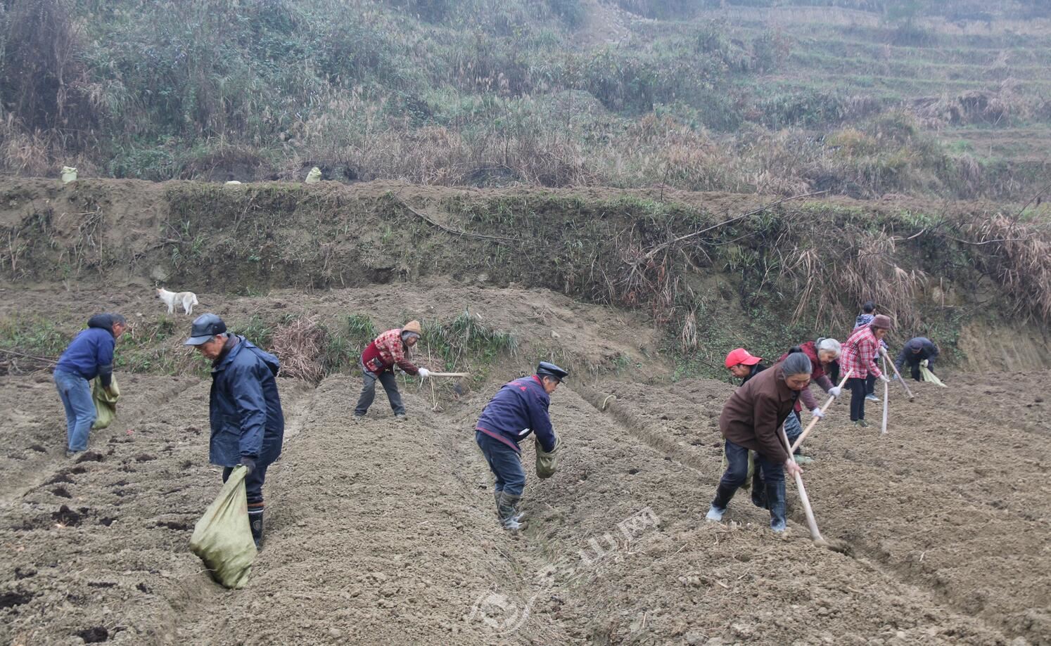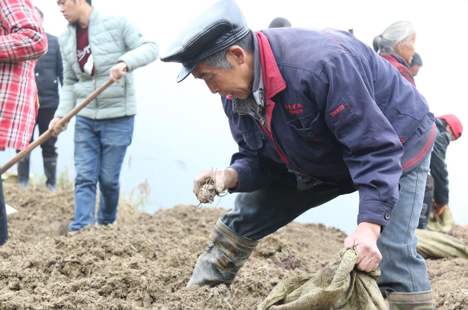 “種子稍微切大塊些,栽種時不要放在肥料上,切口一定要朝上……”聽完技術人員講解,村民又開始繼續手里的活,搬運、施肥、撒種、埋土……忙而有序。