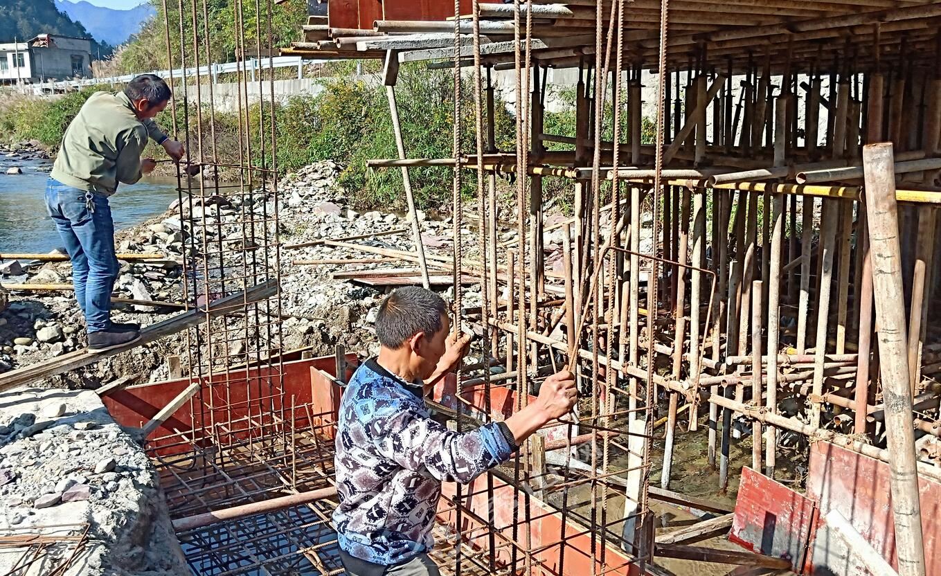 據悉,該處原是村民用電線樁和樹干等搭建的簡易橋,行走極為危險。為此,該村規劃修建一座長約18米,寬5米的便民橋,于今年9月開始施工,目前已基本成型,照進度本月內完工并投入使用。該便民橋的建成,極大地方便了村民的出行。
