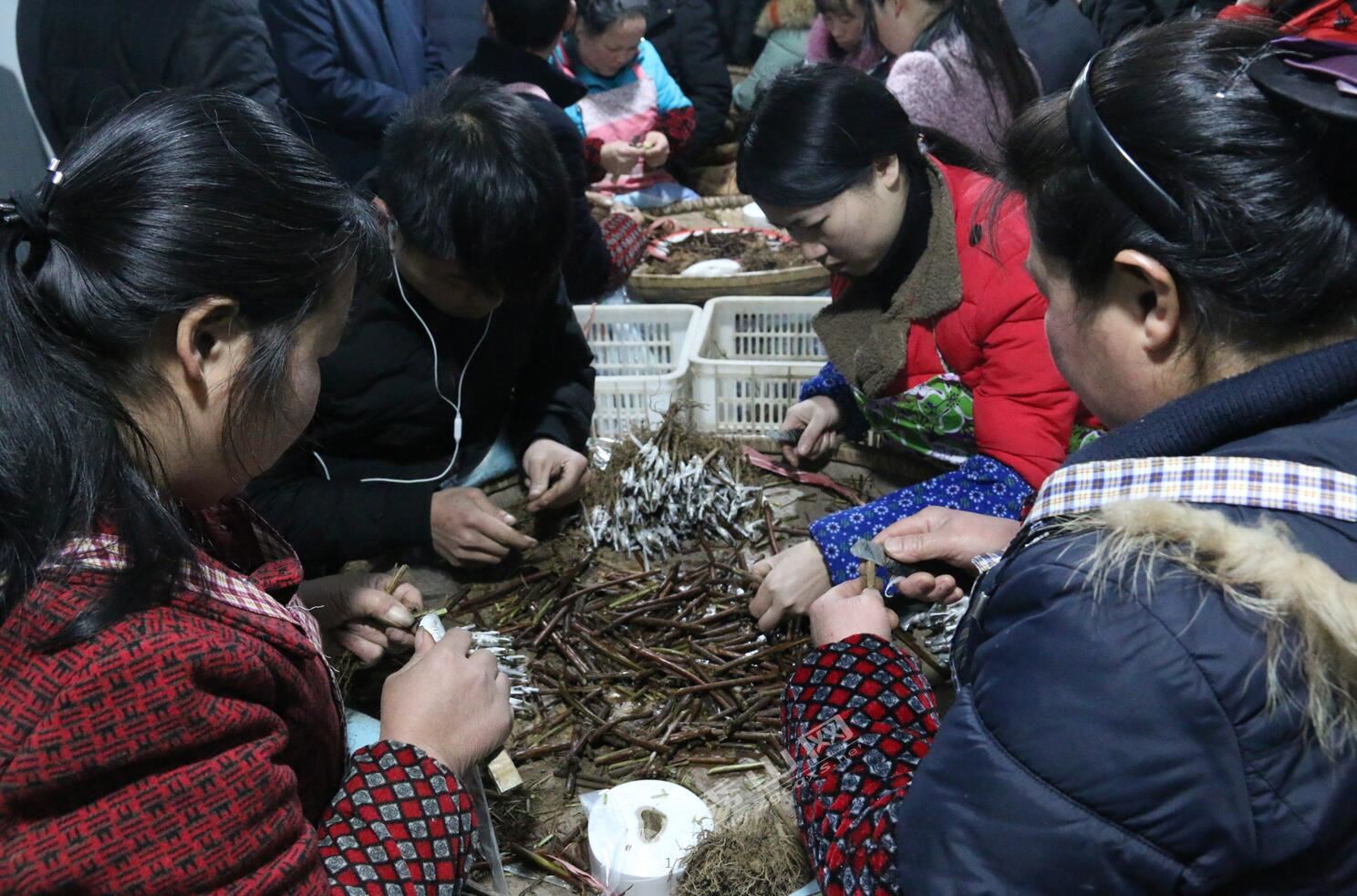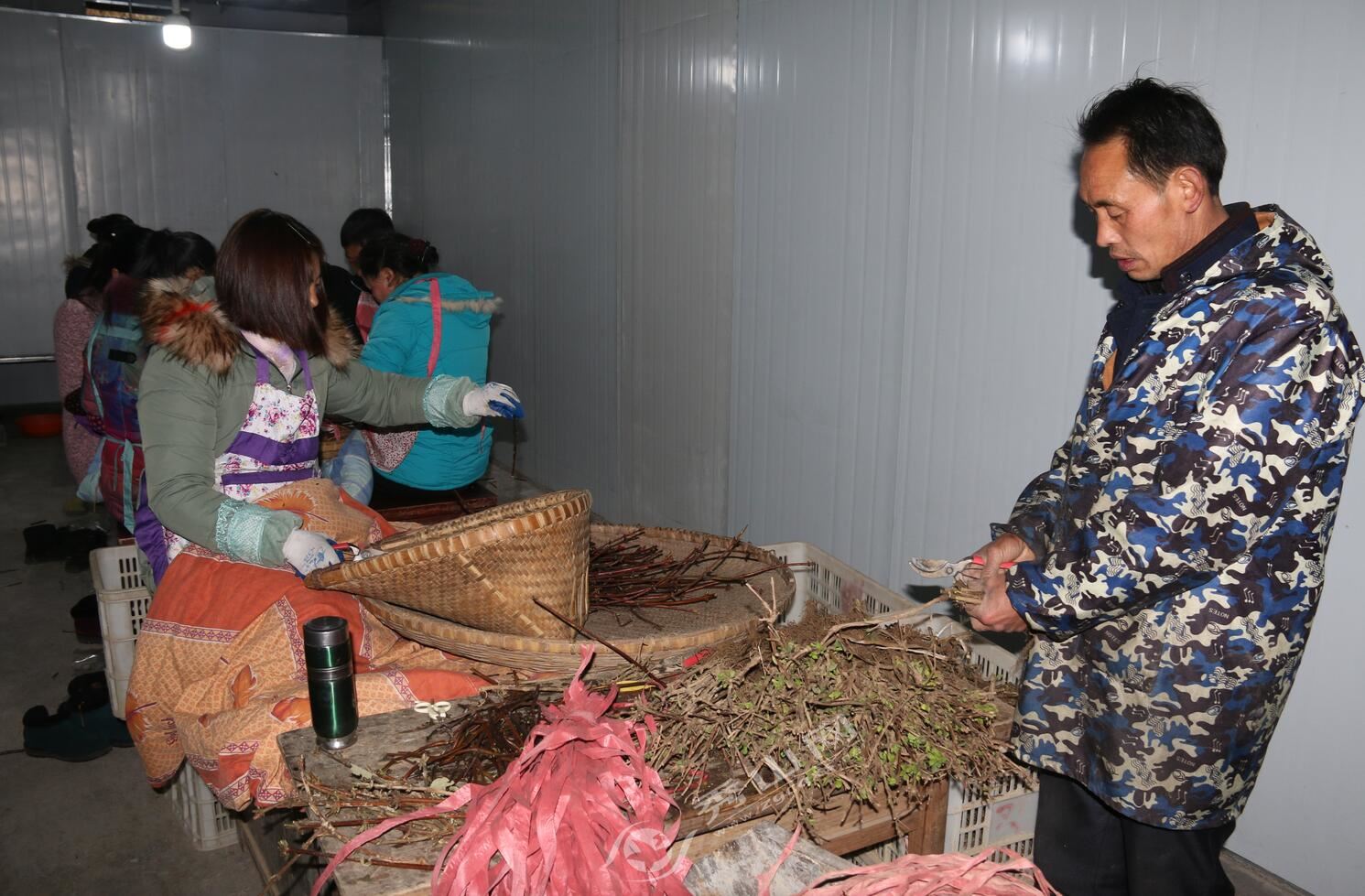 秀山網訊 2月13日,在隘口鎮壩芒村的銀花加工廠內,十余名農戶正抓緊時間進行銀花種苗加工。2018年該村金銀花產業實現豐產,鮮花產量50余萬斤,實現農戶鮮花銷售收入500余萬元,種植農戶戶均收入1萬元以上,帶動90余戶建卡貧困戶脫貧致富。