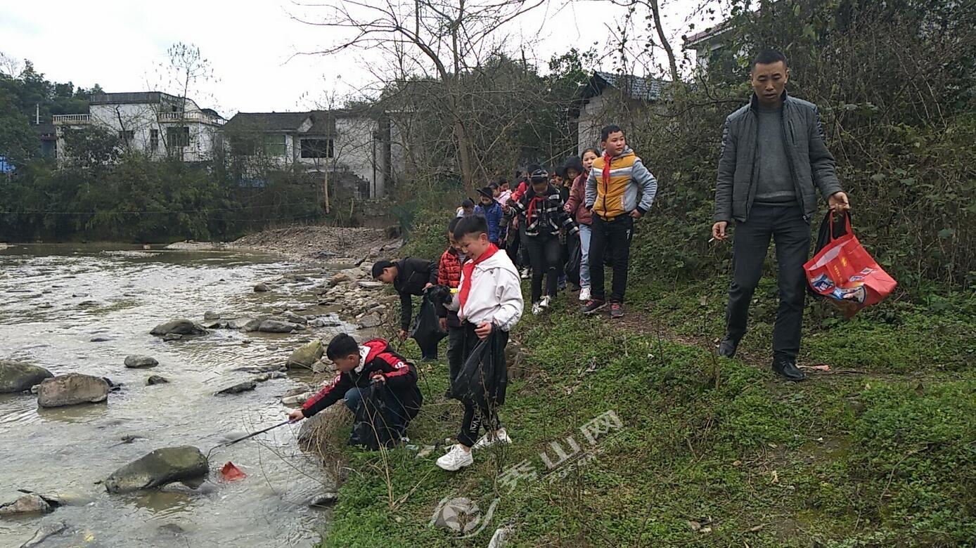 秀山網訊 為扎實推進生態文明建設,多措并舉落實及鞏固“河長制”成效,守護碧水清流,3月14日,峨溶鎮開展“小手牽大手”清潔活動。活動中,三溪村小100余學生在鎮、村兩級黨員干部及學校老師的帶領下,對峨溶鎮三溪村河壩環境衛生進行了清理整治。