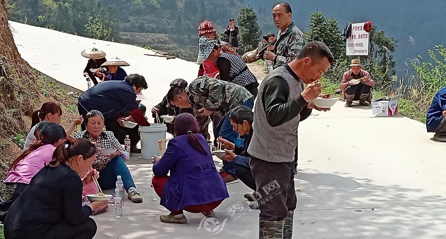 秀山網訊 正午時分,筆者遇見一大群人在山坡上吃午飯,簡單的面條,臉上卻洋溢著幸福的笑容。