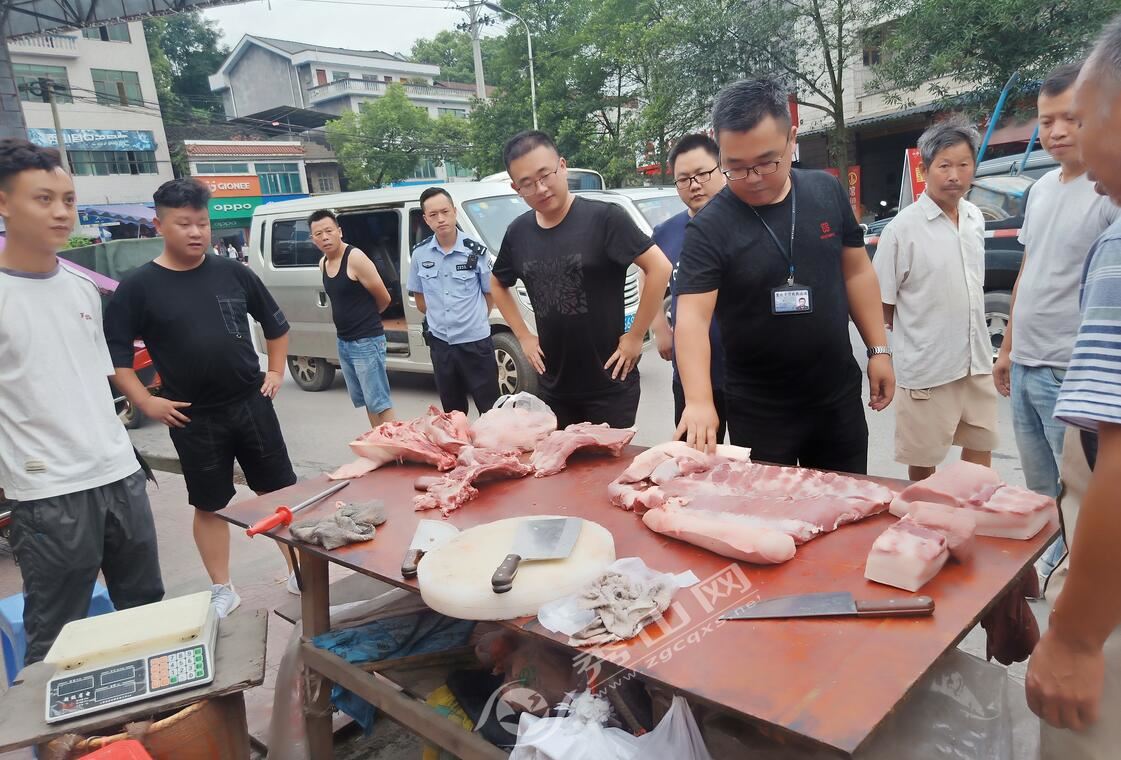 秀山網(wǎng)訊 7月24日上午,石耶鎮(zhèn)人民政府組織鎮(zhèn)食藥監(jiān)、畜牧站聯(lián)合石耶鎮(zhèn)派出所、梅江市場監(jiān)督管理所對石耶農(nóng)貿(mào)市場、隆福超市以及各村(居)共14家經(jīng)營攤戶1600余斤豬肉產(chǎn)品開展“白板肉”專項整治行動。
