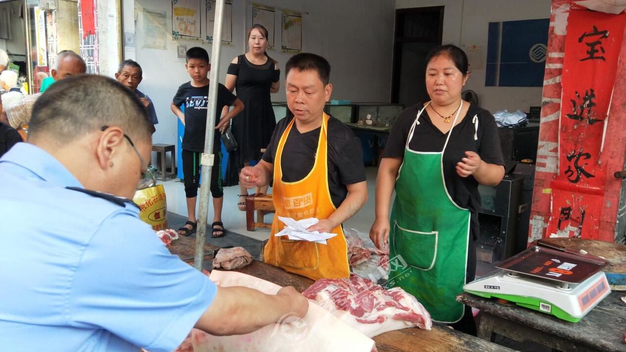 據(jù)統(tǒng)計(jì),此次行動(dòng)共檢查豬肉攤販9個(gè),發(fā)放宣傳單150余份。未發(fā)現(xiàn)“白板肉”銷(xiāo)售,查處龍譚屠宰場(chǎng)出具的“兩章兩證一報(bào)告”中報(bào)告不齊3起,執(zhí)法人員對(duì)報(bào)告不齊的生豬肉進(jìn)行了當(dāng)場(chǎng)扣押收回并進(jìn)行無(wú)公害化處理,有效保證轄區(qū)豬肉產(chǎn)品質(zhì)量安全。下一步,該鎮(zhèn)將進(jìn)一步加大非洲豬瘟的宣傳及豬肉市場(chǎng)檢查和執(zhí)法力度,保障轄區(qū)人民群眾“菜籃子”安全。