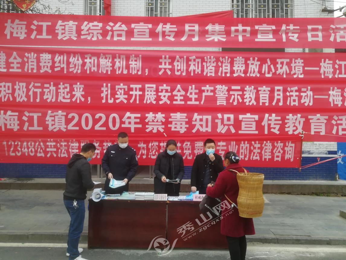 秀山網訊 梅江鎮黨委、政府在狠抓疫情防控的同時,高度重視梅江鎮的社會治安的穩定。為加強群眾安全防范意識,確保群眾生命財產安全得到有效保障,3月16日,梅江鎮集中開展綜治、安全法治宣傳活動。