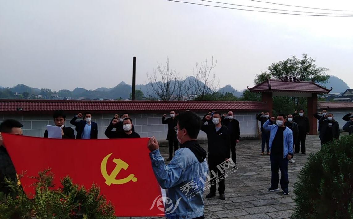 在巍然屹立的革命烈士紀念碑前,全體人員呈1米間距站開,齊奏國歌后,梅江鎮黨委書記和鎮長向烈士敬獻花籃,其余人依次向先烈敬獻花束,集體默哀以寄托哀思。隨后,所有黨員干部面對鮮紅的黨旗高舉右拳,莊嚴重溫入黨誓詞,深切緬懷先烈和逆行英雄,時刻銘記初心牢記使命,繼承發揚革命精神為建設梅江而努力。