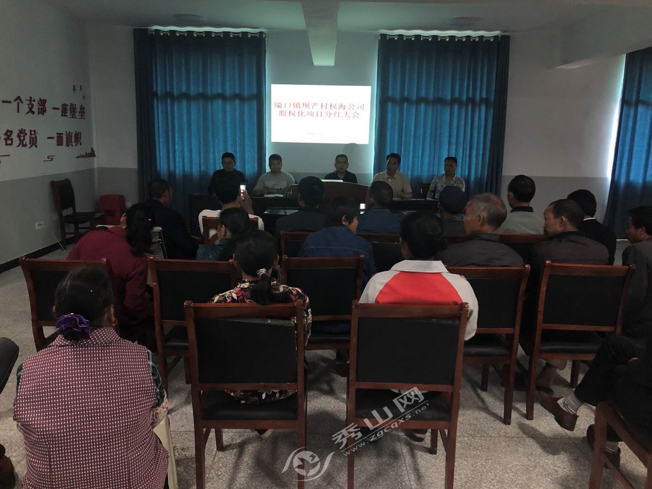 秀山網(wǎng)訊 5月14日,重慶市權(quán)海農(nóng)業(yè)開發(fā)有限責(zé)任公司股權(quán)化項(xiàng)目分紅大會在壩芒村委會舉行。