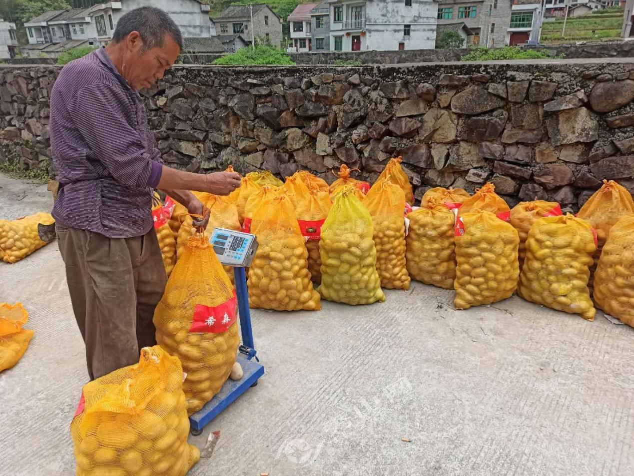 馬鈴薯種植戶在統(tǒng)一銷售處稱重。龍吉 攝