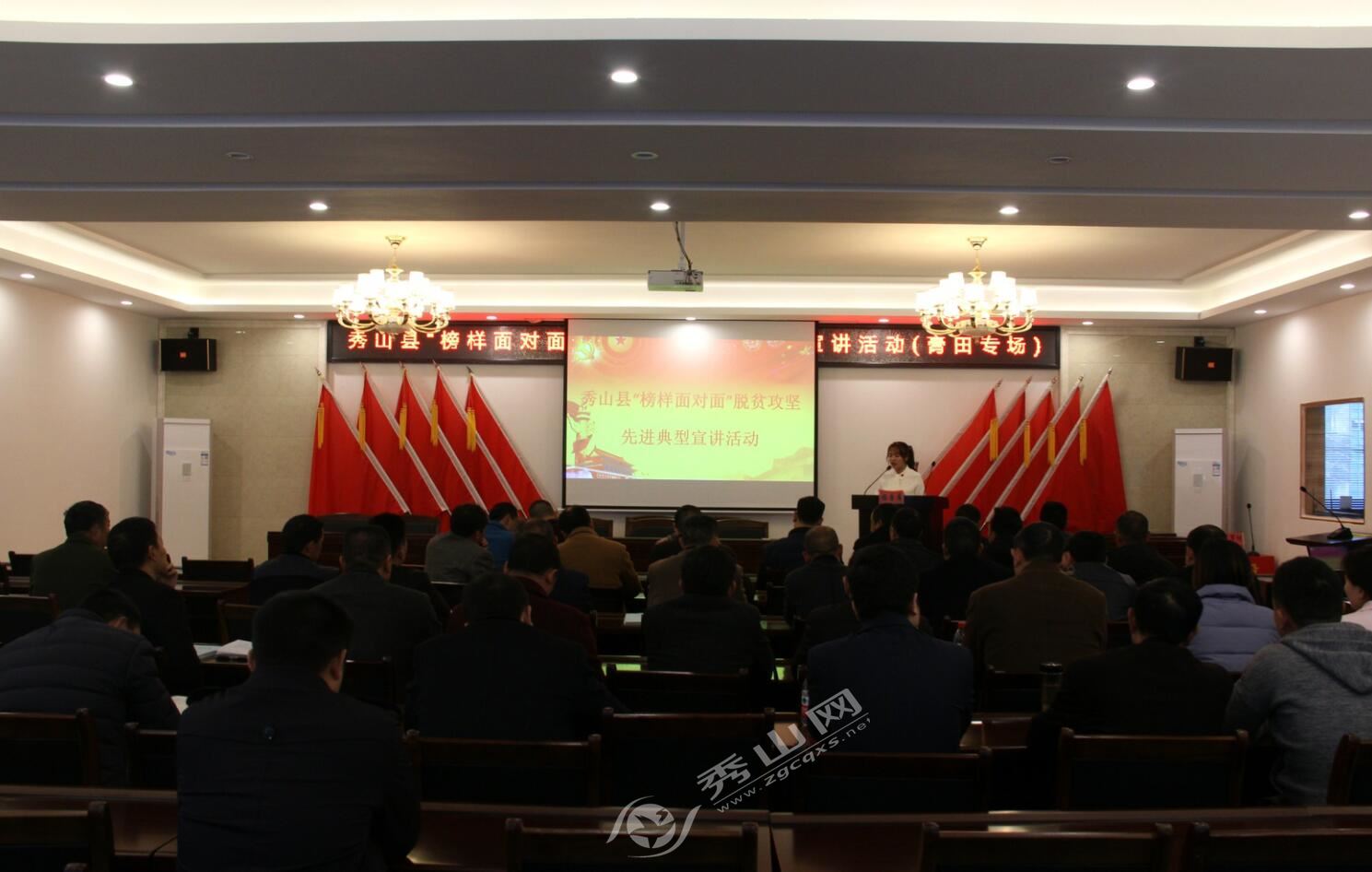 秀山網訊 4月3日,“榜樣面對面”脫貧攻堅先進典型宣講活動走進膏田鎮、溶溪鎮,為兩鎮一線扶貧干部和村(社)兩委干部宣講脫貧攻堅典型事跡,進一步營造打贏脫貧攻堅戰的濃厚氛圍。