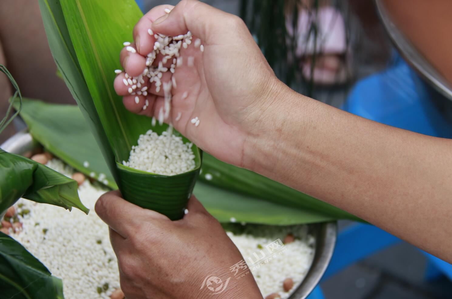同時,還有“能手”在賽場外,現場教授包粽子,引來眾多村民學習體驗。