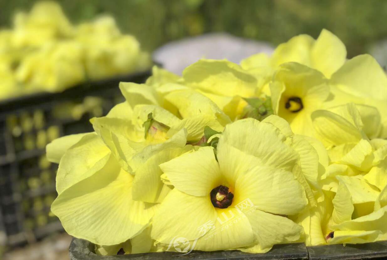 目前,該村種植的黃蜀葵花競相綻放,植株修長而挺立,花朵大而嬌媚。據了解,黃蜀葵花期一般在4個月左右,盛開的鮮花要在當天及時采摘,當地村民忙個不停。