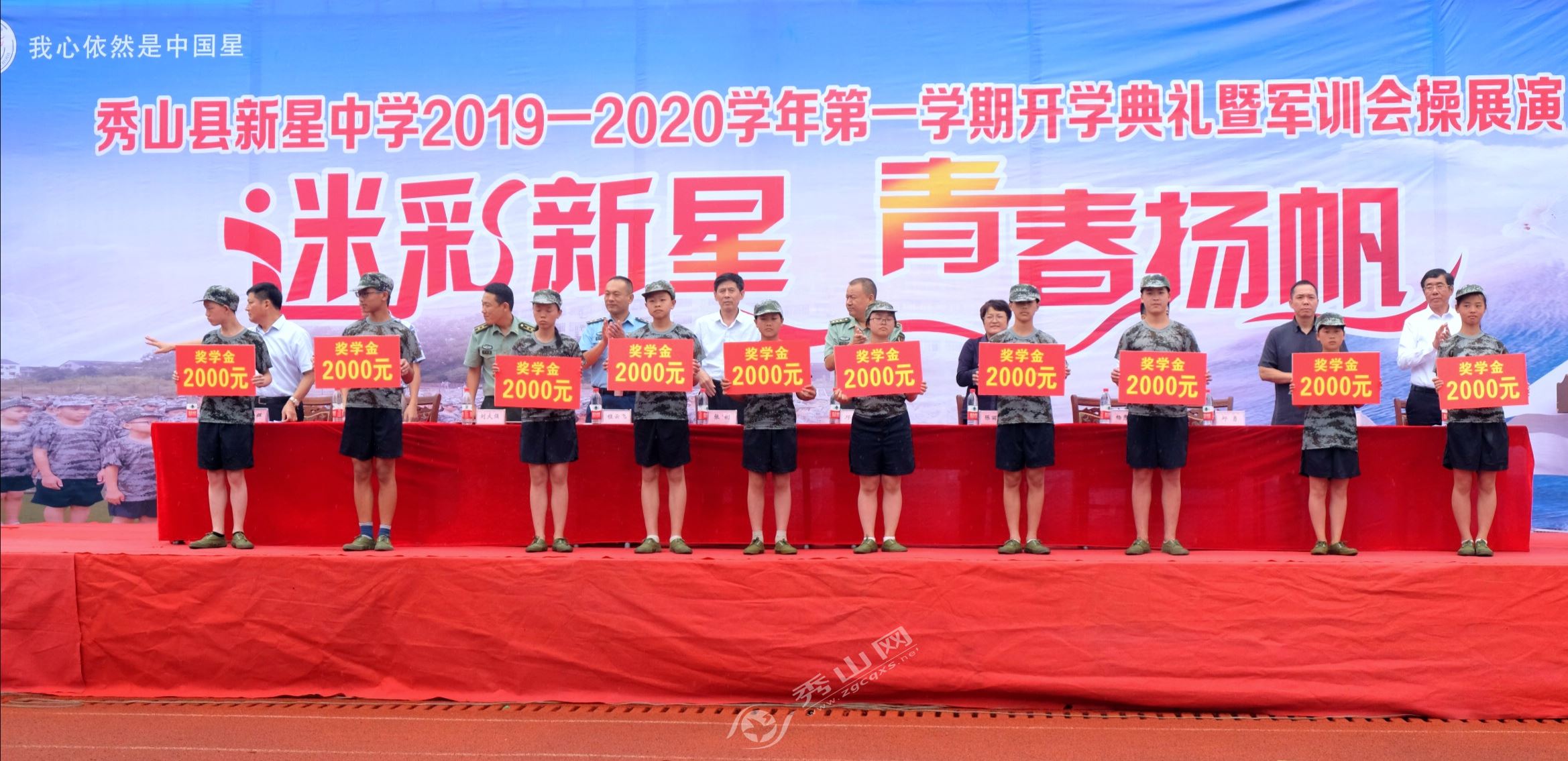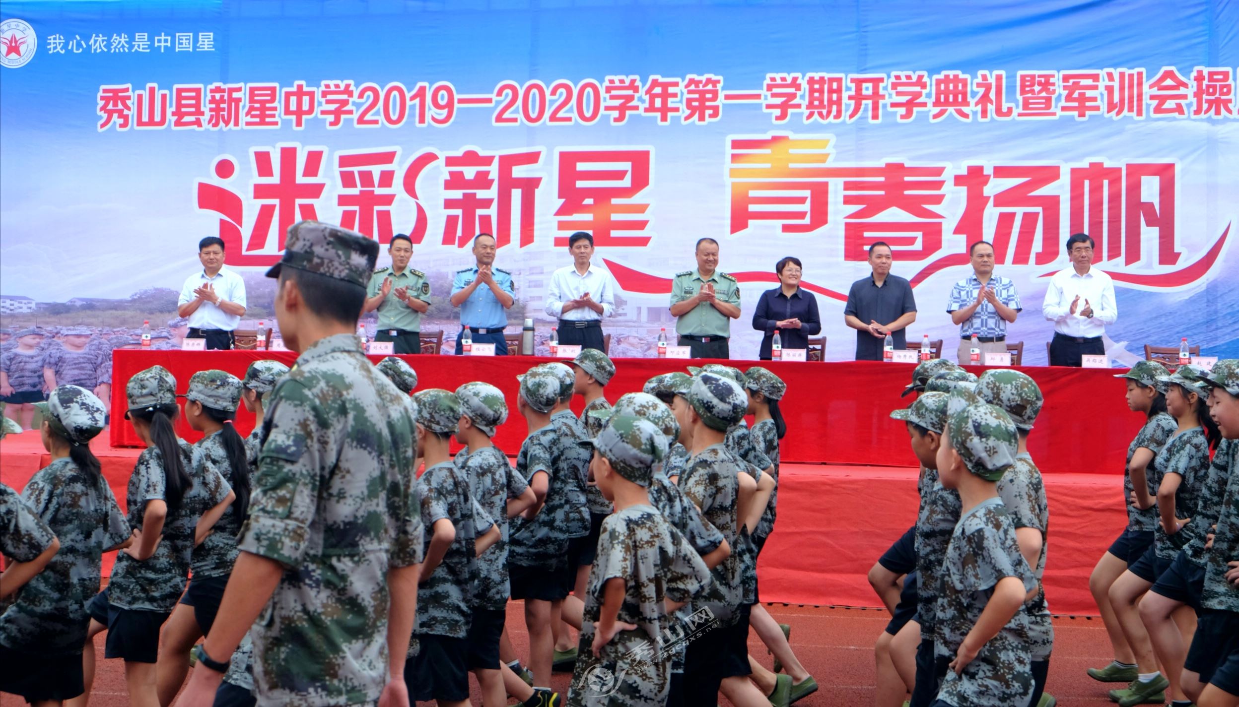 秀山網(wǎng)訊 為培養(yǎng)學(xué)生吃苦耐勞的優(yōu)良品質(zhì),激勵(lì)學(xué)生努力學(xué)習(xí),切實(shí)做好新生入學(xué)教育工作。9月1日,新星中學(xué)舉辦2019至2020學(xué)年第一學(xué)期開學(xué)典禮暨軍訓(xùn)會(huì)操展演。縣委常委、人武部部長(zhǎng)鄧應(yīng)軍,縣政協(xié)副主席、工商聯(lián)主席陳麗萍出席。