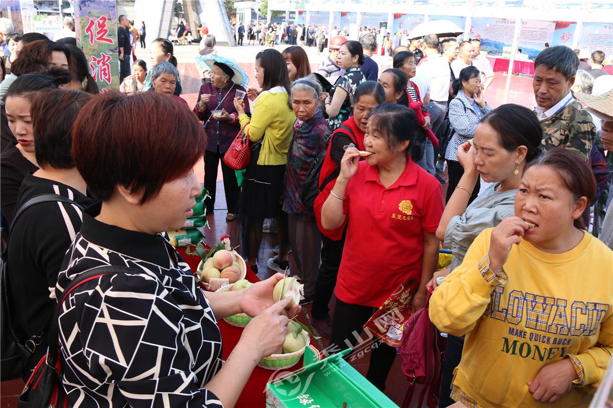 秀山網訊 9月23日上午,我縣2019年中國農民豐收節暨消費扶貧系列活動在花燈廣場啟動。記者在脫貧攻堅產品展示展銷區看到,現場人頭攢動,眾多市民一邊逛展、品嘗,一邊贊不絕口,各展銷點生意十分火爆。