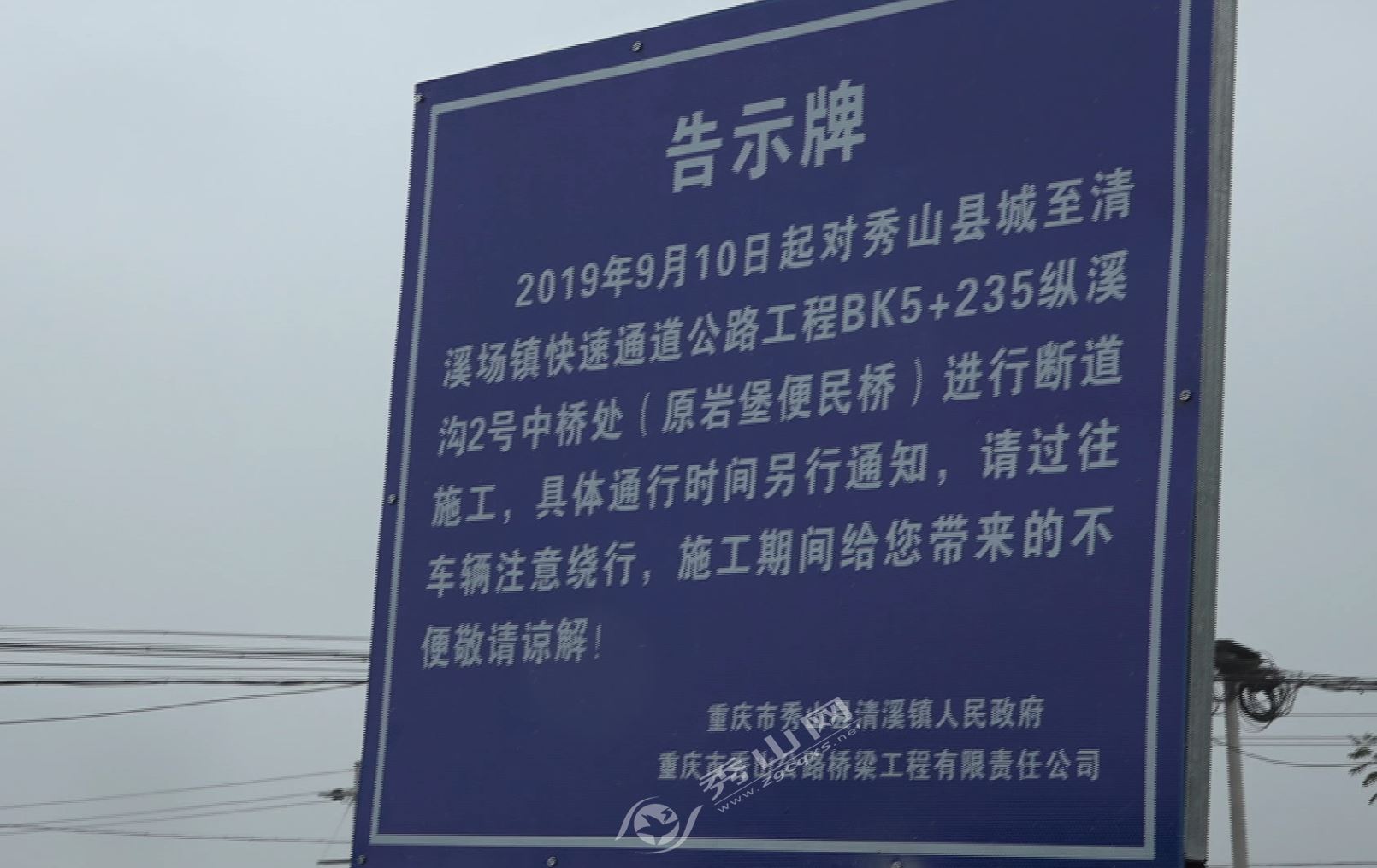 目前,縣城至清溪場鎮(zhèn)快速通道公路工程BK5+235縱溪溝2號中橋已啟動建設(shè),建設(shè)期間對原巖堡便民橋進行斷道施工,過往車輛注意按工程施工告示繞道通行。