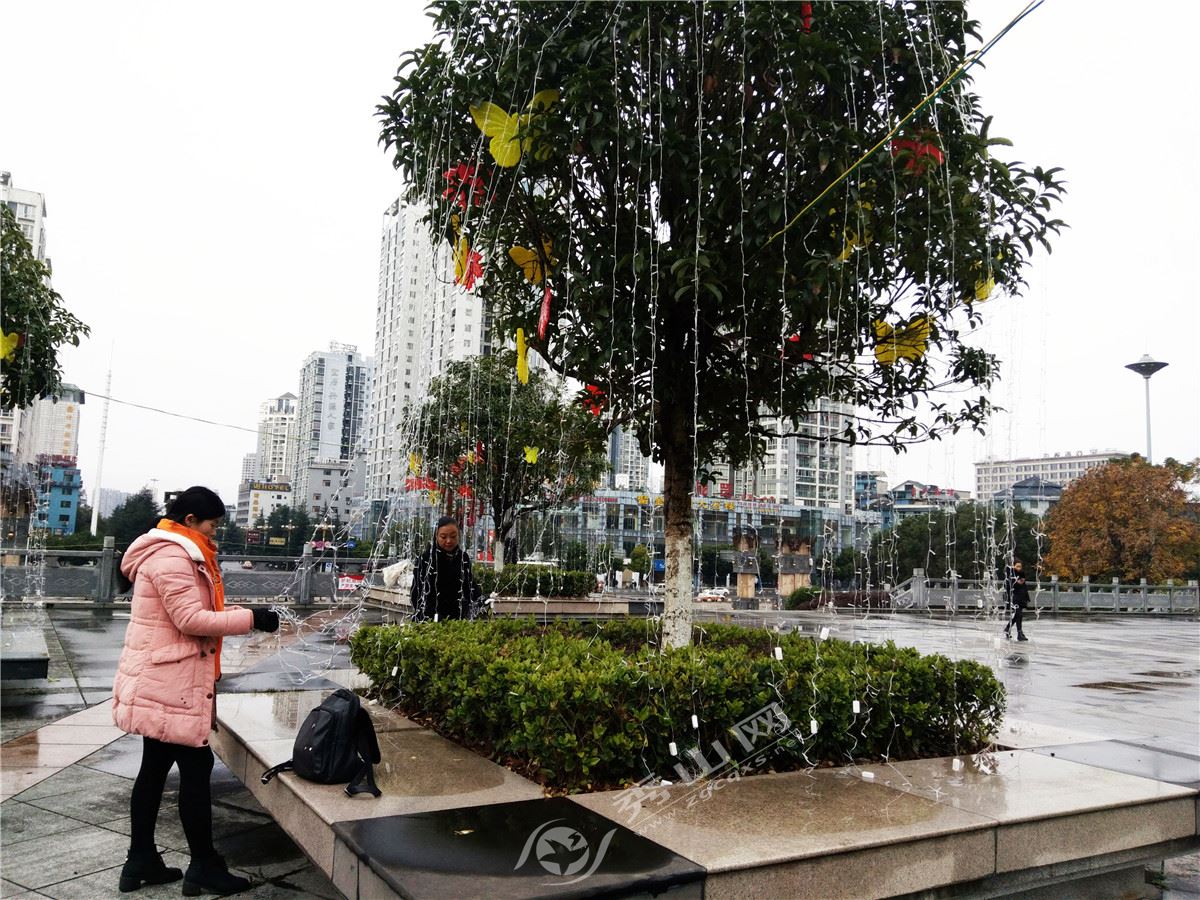 12月19日上午,記者在火車站看到,多名工作人員正忙著對(duì)廣場(chǎng)兩旁的樹木進(jìn)行燈飾安裝,站臺(tái)上的大紅燈籠也煥然一新。在中和廣場(chǎng)和花燈廣場(chǎng),道路兩旁的樹上也掛滿了火紅的燈籠,一派喜慶景象。