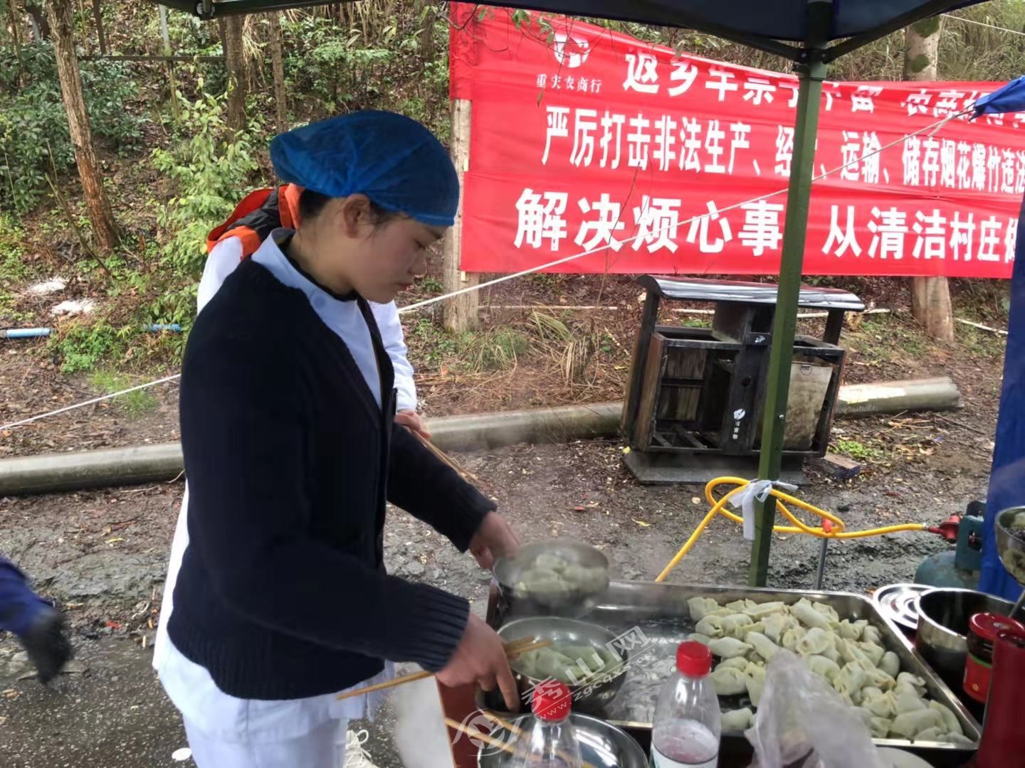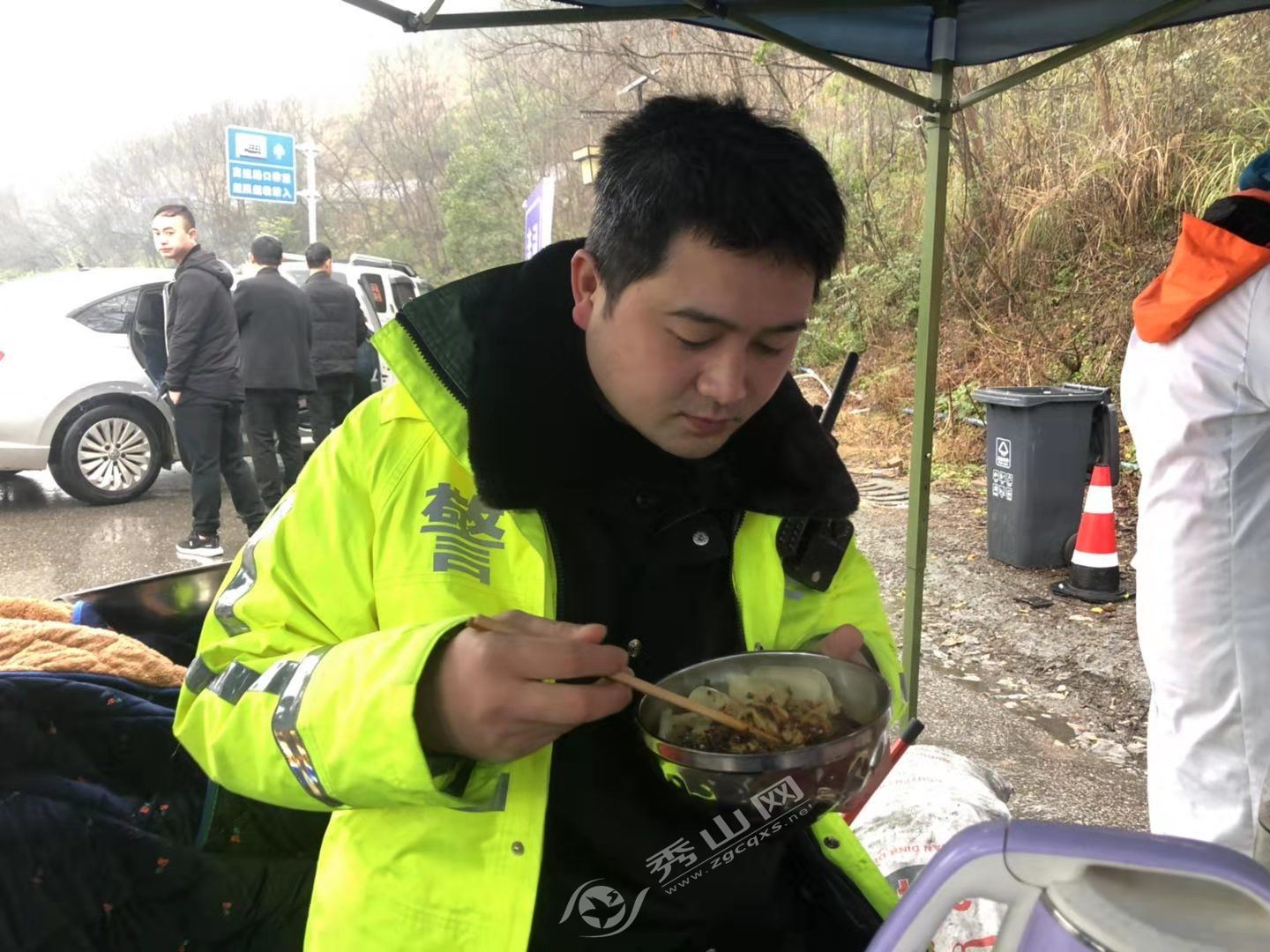 “有兩個兒子,大的三歲,小的才一歲多。”正在吃餃子的黃松告訴記者,他是雅江鎮派出所工作人員,春節這段時間一直在值班,好幾天沒見著家人了,雖然心里很想念孩子,但是不能見他們,一是自己要值班,沒得時間;二是自己在路口檢測,接觸人員多,為了家人健康也不敢見。