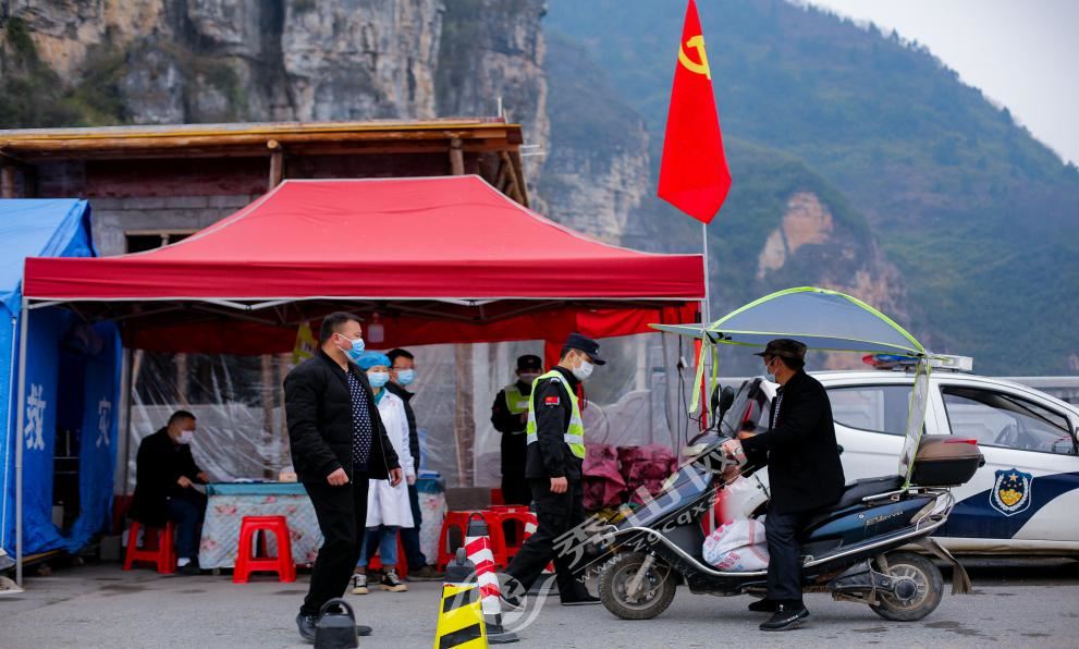 “三頂臨時帳篷,10張折疊床。” 1月27日,位于縣城西南26公里處的隘口鎮,聯合交通、公安、衛生等部門在國道326線與貴州省交界處搭建起了疫情防控檢查點,全天24小時對入境車輛逐一進行信息登記核查,對入境人員進行體溫測量,確?!安宦湟卉嚕宦湟蝗??!?/span>