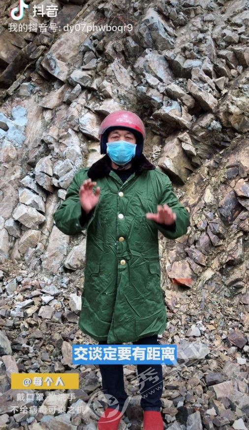 “父老鄉親大家好,主動在家不亂跑。病毒防疫很重要,不能放任和耍驕。傳染速度很驚人,所有聚會都取消。相互不要再串門,呆在家里無限好。交談定要有距離,不到人群湊熱鬧。勤洗手來勤洗臉,室內通風才是好。若要外出去務工,個人防護很重要……”2月10日,富裕村駐村隊員楊正明在駐村工作隊全體成員的協助下,錄制了秀山方言版短視頻《疫情防控宣傳順口溜》,該視頻中楊正明以村委會附近的巖石為背景,身穿軍大衣,頭戴紅色的摩托車頭盔和口罩,腳穿紅布鞋,以接地氣且通俗易懂的方言表演了防疫順口溜,每一句順口溜并配上相應的肢體動作,不僅幽默詼諧、引人注目,更達到了向村民宣傳的效果,視頻通過“抖音”、微信朋友圈發出不久便得到了村民和廣大網友的一大波點贊和支持。