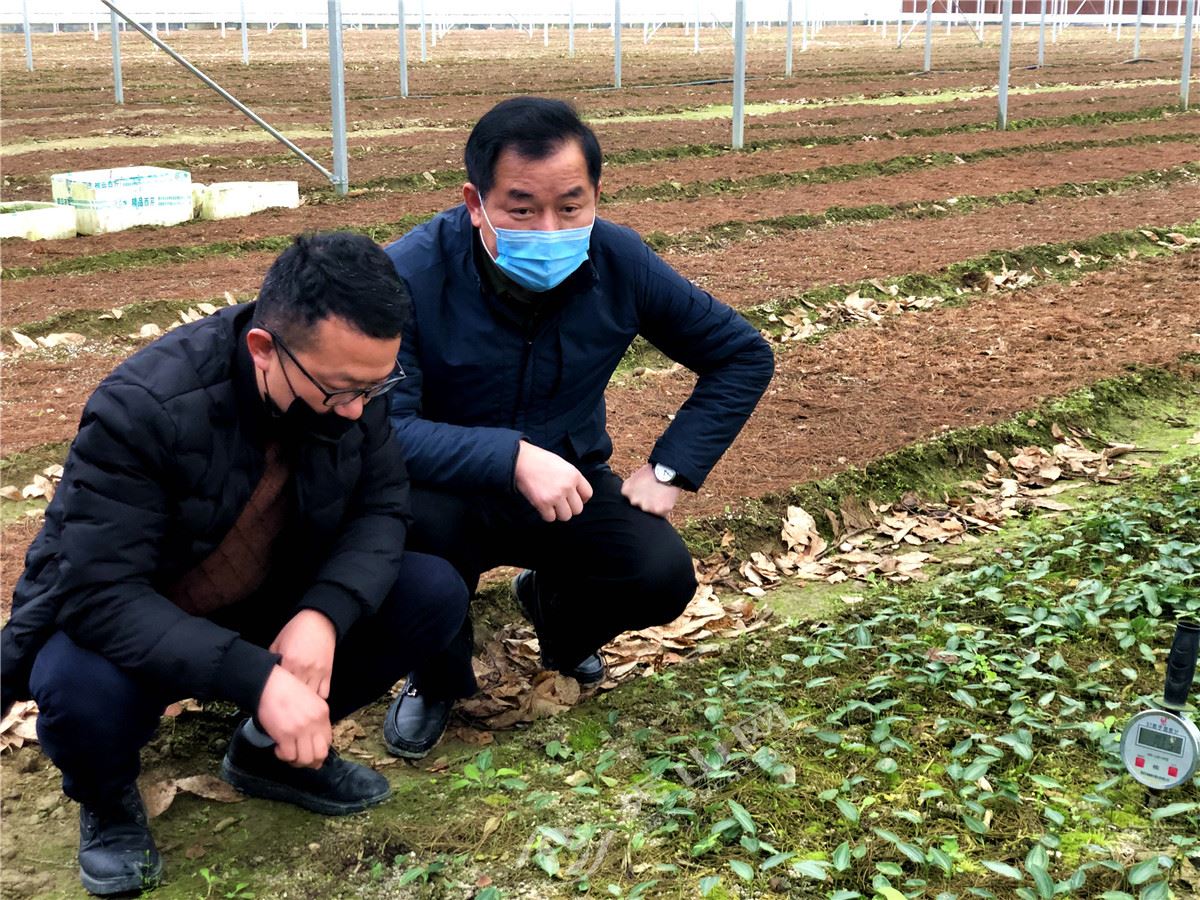 李行能了解黃精育苗情況。全媒體記者 方倩 攝