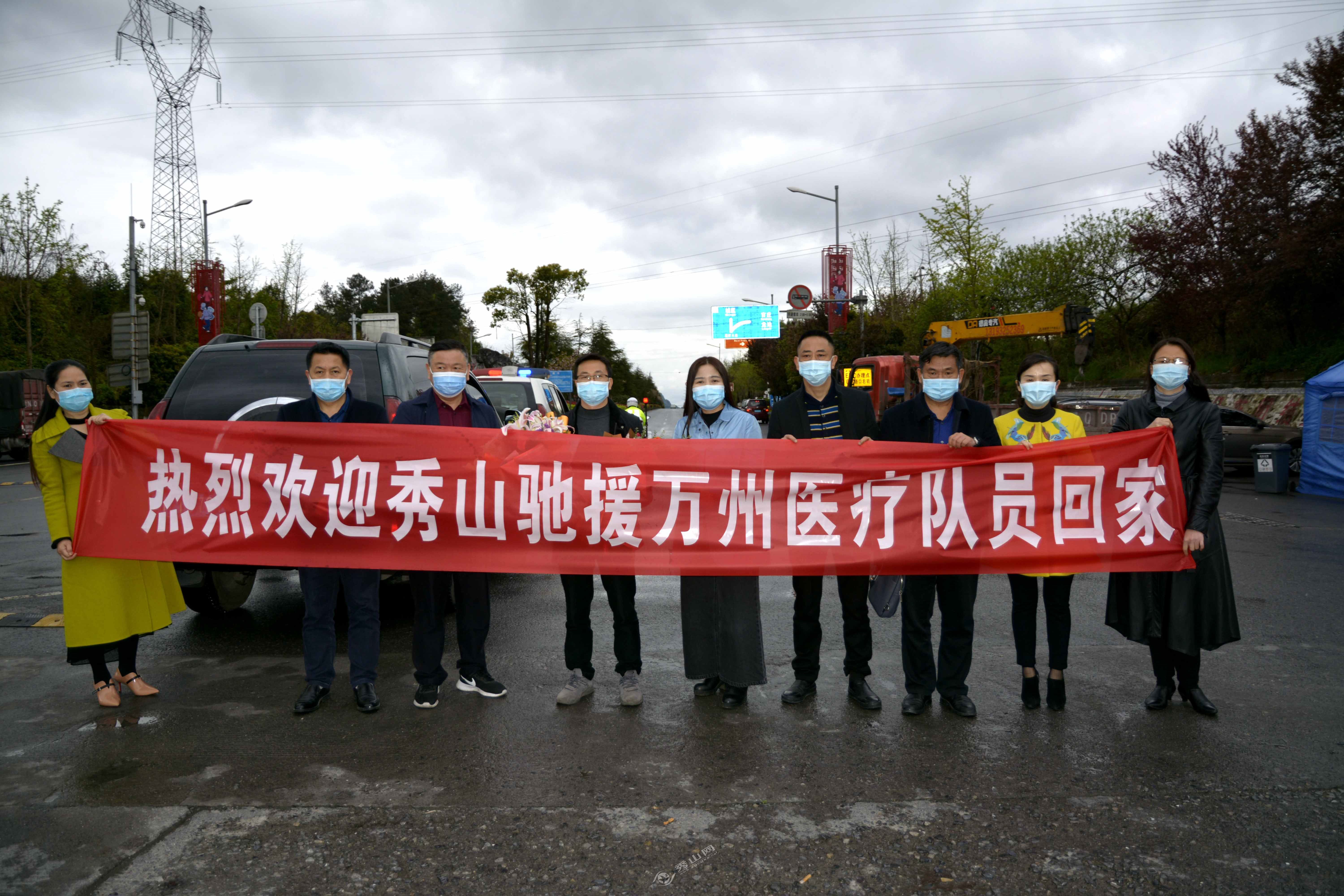 秀山網訊 3月27日,秀山外援抗擊新冠肺炎醫療隊隊員楊偉在圓滿完成各項任務后,平安回家。縣政府副縣長徐燕到秀山收費站迎接,并代表縣委、縣政府為其送上鮮花表示歡迎與感謝。