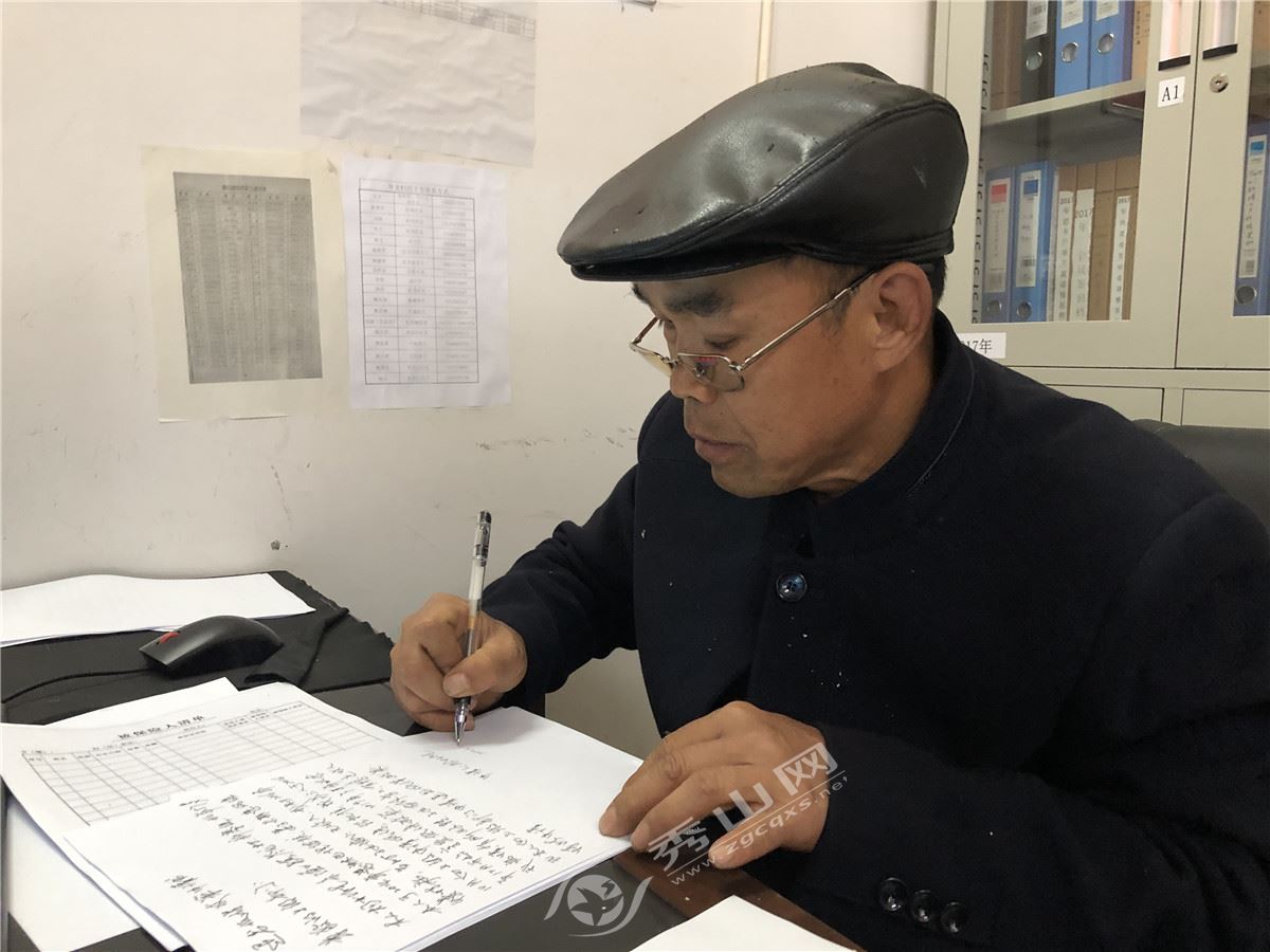 楊松勝正在寫申請書。全媒體記者 田坤 攝