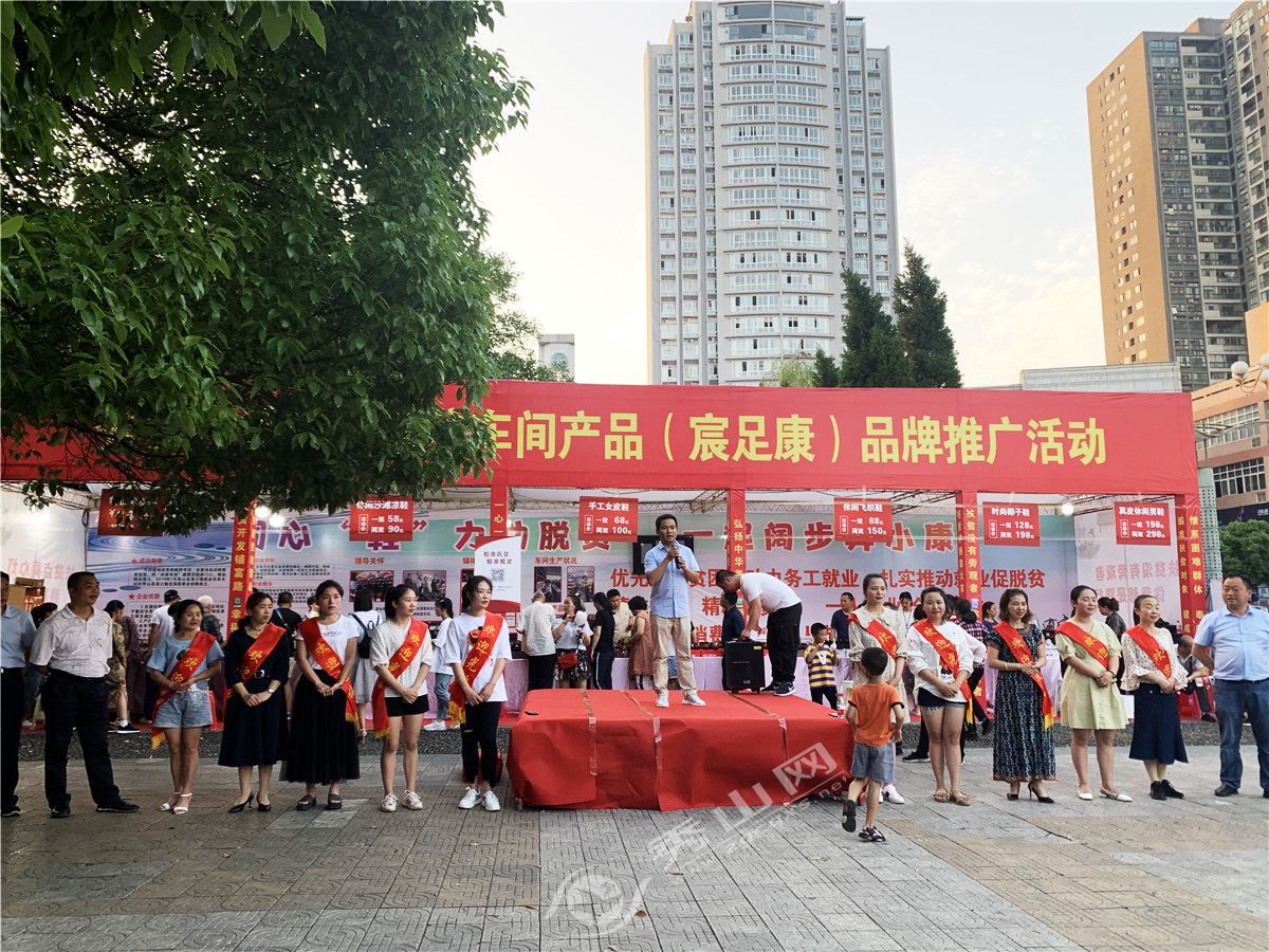 秀山網訊 為展示扶貧車間工作成效,宣傳扶貧車間產品,5月23日晚,溪口鎮在花燈廣場開展扶貧車間產品品牌推廣活動,向廣大市民集中展示和銷售車間產品。