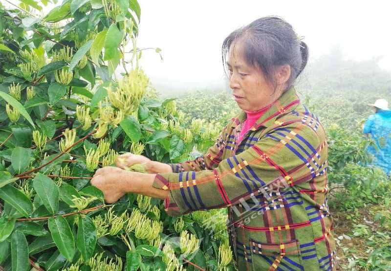村民采摘銀花。吳國超 攝