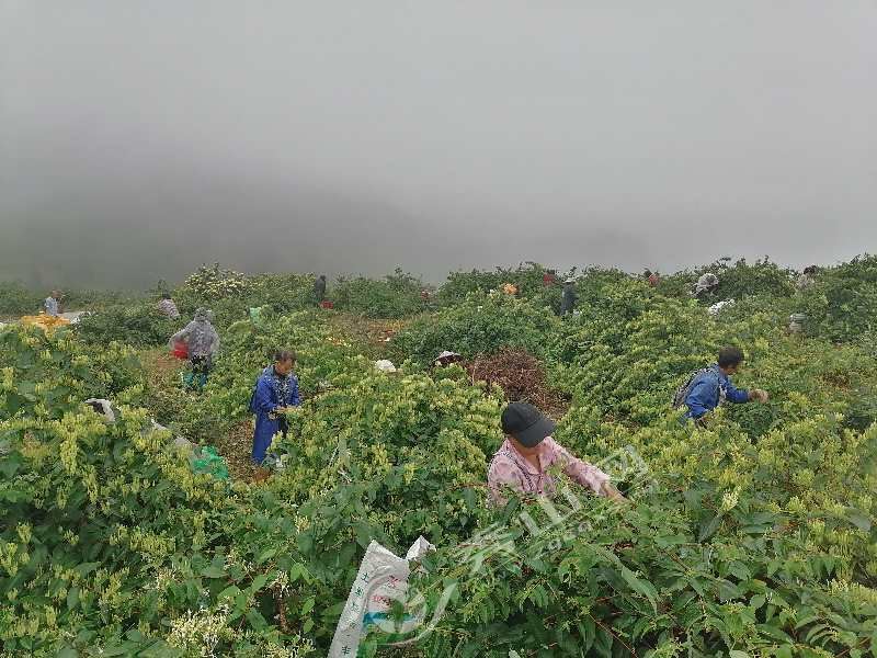 據權海農業開發有限公司負責人張勝海估算,壩芒村今年預計采摘銀花80萬斤,可為種植農戶創收約800萬元。