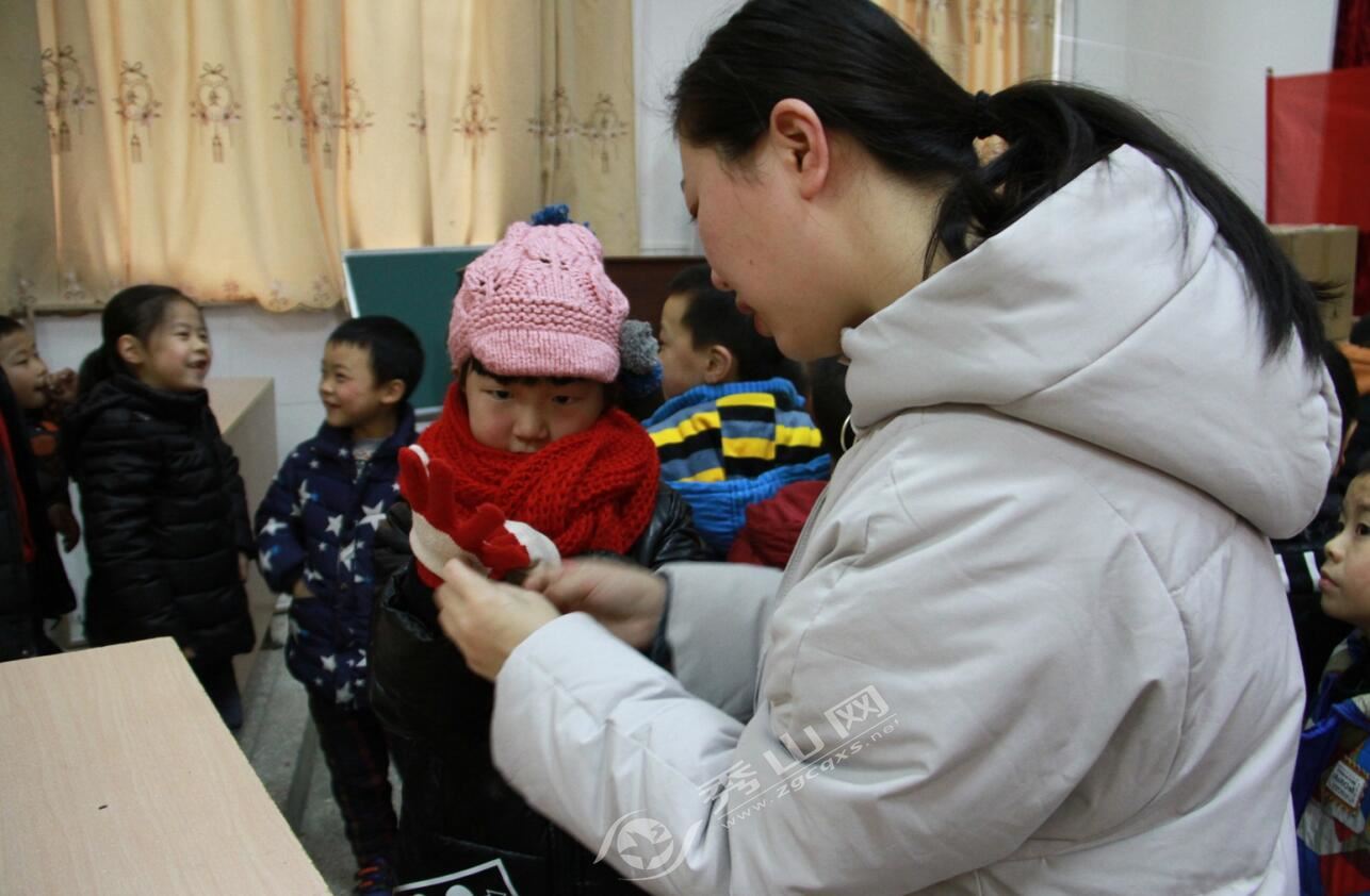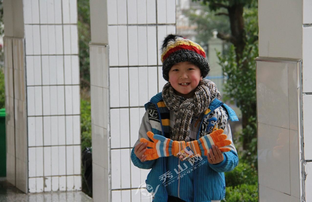 “現在天氣越來越冷,同學們每天來上學出門都很早,特別是一些邊遠山區孩子,天寒地凍的,正需要這些手套、圍巾和帽子抗寒?!卑阪傊行男5睦蠋熣f。