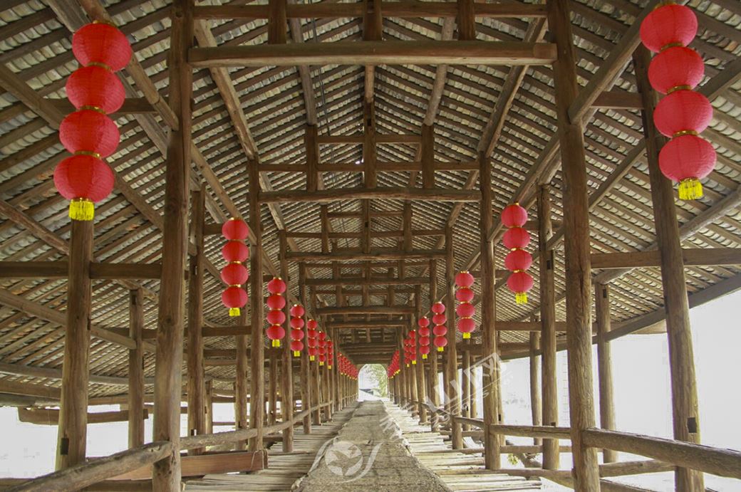 梁上并排的紅燈籠給客寨橋添加了些許喜慶之色,也仿佛是在照亮回家的路。在素有“武陵山中廊橋之鄉”美譽的秀山,客寨橋無疑是秀山廊橋中歷史最為悠久、最具代表性的古橋。但其年事已高,需要多多關照,才能再現其莊重古樸的歷史風貌,繼續為居民遮風擋雨。