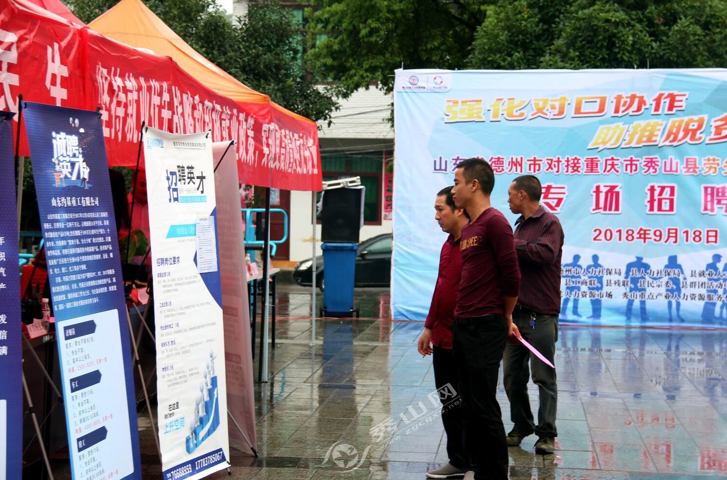 據了解,該招聘會由山東省德州市人力社保局和秀山縣人力社保局、縣就業人才局、縣總工會、縣扶貧辦、縣婦聯、縣工商聯、縣殘聯、縣民宗委、縣群團活動中心、清溪場鎮人民政府聯合主辦,秀山縣公共人力資源市場、縣重點產業人力資源服務有限公司承辦,旨在進一步健全山東德州、重慶秀山兩地對口幫扶機制,提升對口幫扶水平,幫助尚未就業的畢業生、下崗失業人員、返鄉農民工、貧困勞動力以及殘疾人員等求職者更好就業。