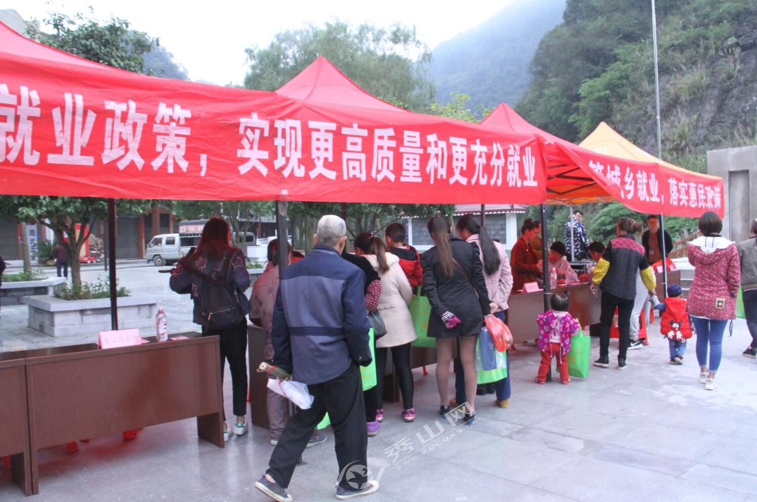 秀山網訊 10月16日,由縣人力社保局、縣就業人才局、縣總工會、縣扶貧辦、縣殘聯、縣婦聯、縣民宗委、縣工商聯、縣群團活動中心、隘口鎮人民政府聯合主辦的就業扶貧行動日活動專場招聘會在隘口鎮山水隘口廣場舉行。