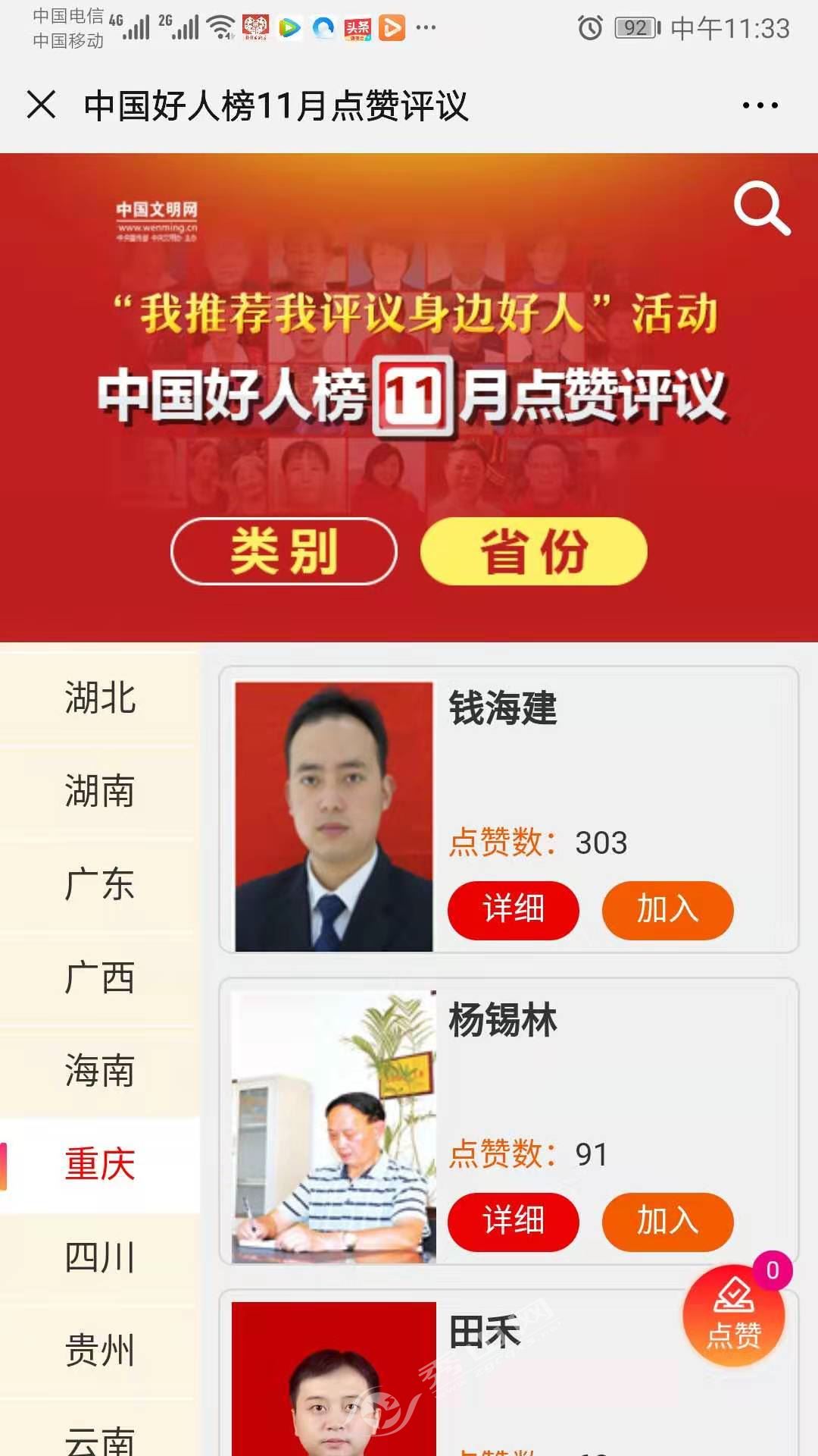 點(diǎn)贊方法:關(guān)注“中國文明網(wǎng)”微信公眾號→按省份→重慶→錢海建→加入→點(diǎn)贊。