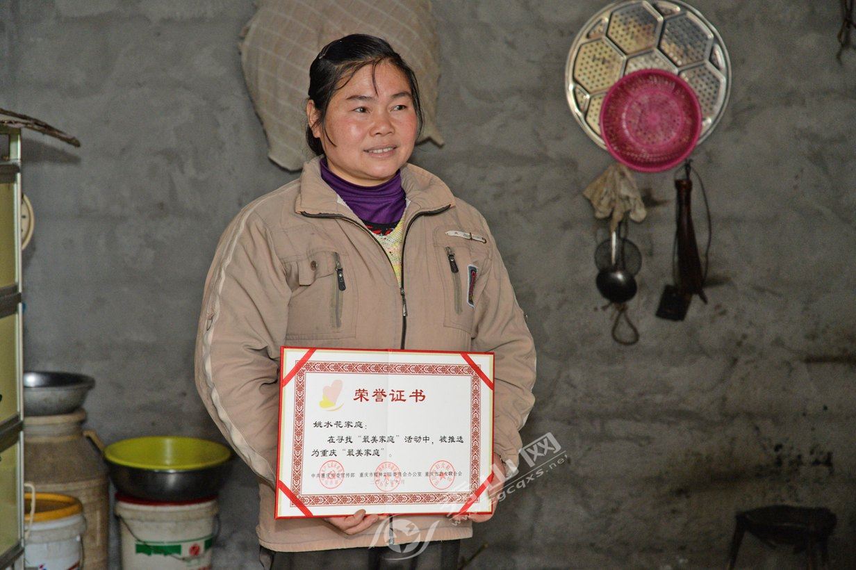 生活雖然艱辛,但姚水花并沒有悲觀,她始終堅信只要不放棄生活,生活就不會放棄自己。多年來,雖有低保補助維持生活,但姚水花并沒有滋生等靠要思想,她吃苦耐勞、勤儉持家,曾先后獲得了“秀山好媳婦”、秀山最美家庭、重慶最美家庭等榮譽稱號。12年來,她無怨無悔地照顧著癱瘓的丈夫,用勤勞和勇敢支撐起這個風雨飄搖的家,用愛和堅守詮釋著人間真情。