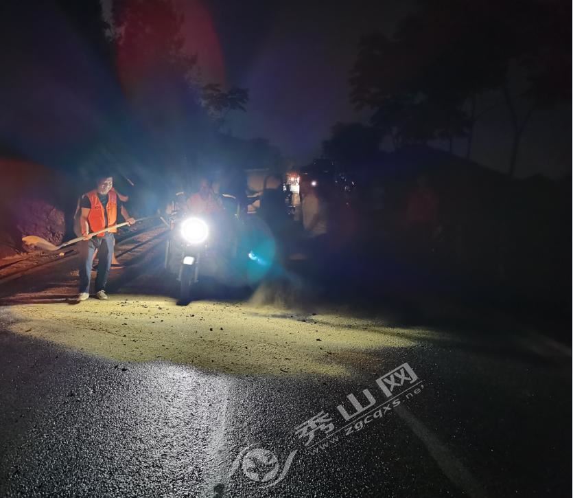 “安全無小事、責任重于泰山”接到電話后,秀山縣公路養護中心立即出動搶險車輛、搶險人員,秀山縣交巡警龍池中隊緊急奔赴事故現場,拉起警示線、設置臨時警示牌,為了保障過往車輛能安全暢通,養護中心組派人員加班加點在當地收集木渣,鋪撒在被油水侵蝕的路面上,防止過往車輛打滑,龍池中隊工作人員負責疏通車輛,警告駕駛員過往該路段一定注意安全。晚上23時,終于在公路養護中心工作人員與龍池中隊交巡警的大力配合下,事故路段過往車輛能夠平穩、安全的暢通無阻。駕駛員紛紛伸出大拇指,點贊堅守在一線的工作人員。
