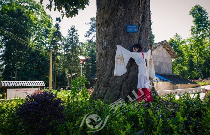 馬鞍山苗族姑娘向古樹祈禱平安,托福愛情。姚華勝 攝