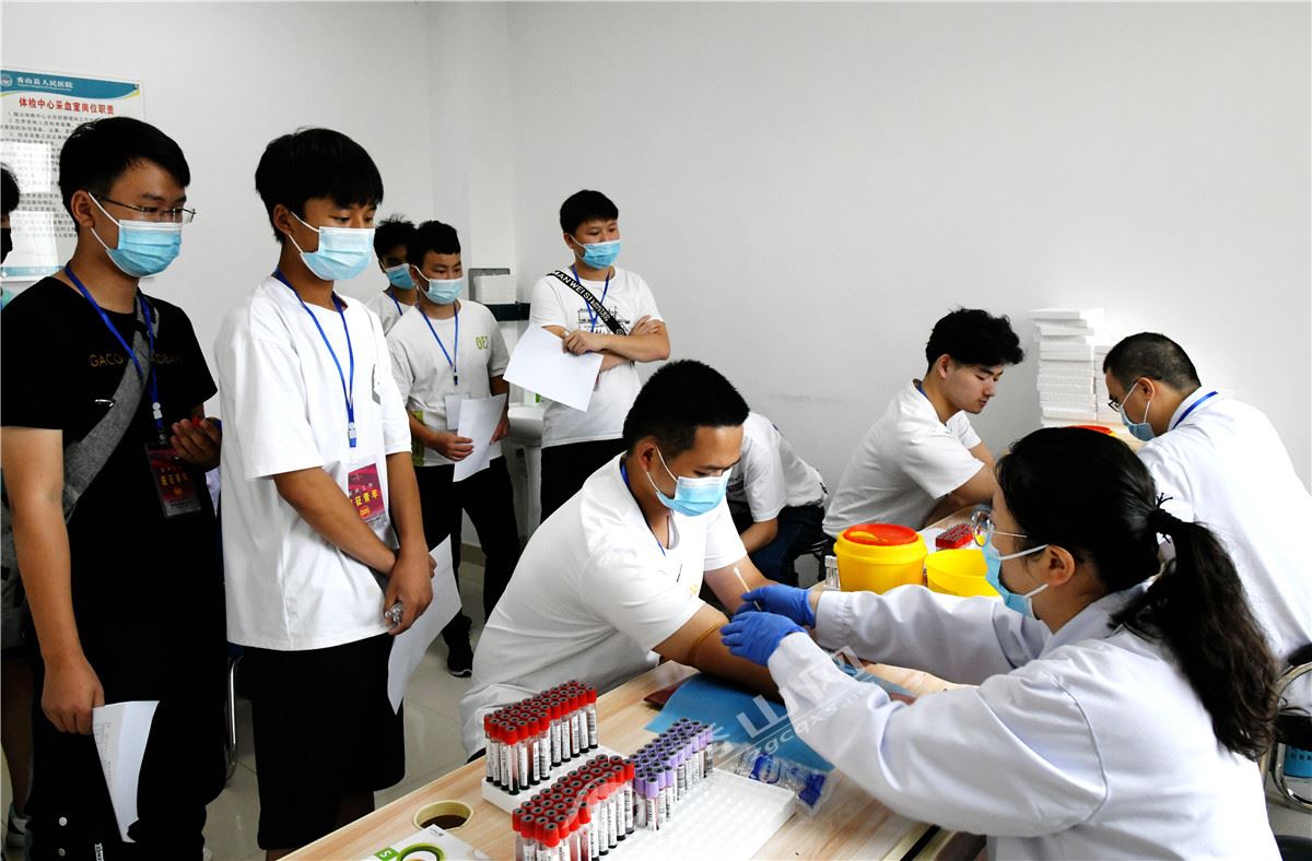 在體檢現場,參加體檢的適齡青年在工作人員的引導下有序進入體檢區,按照身份核實、照相、取指引單、進入科室體檢等程序,進行包括血液、尿液檢查,外科、內科、心電圖、五官科、視力、B超、X光線和心理檢測等10個項目的檢查。
