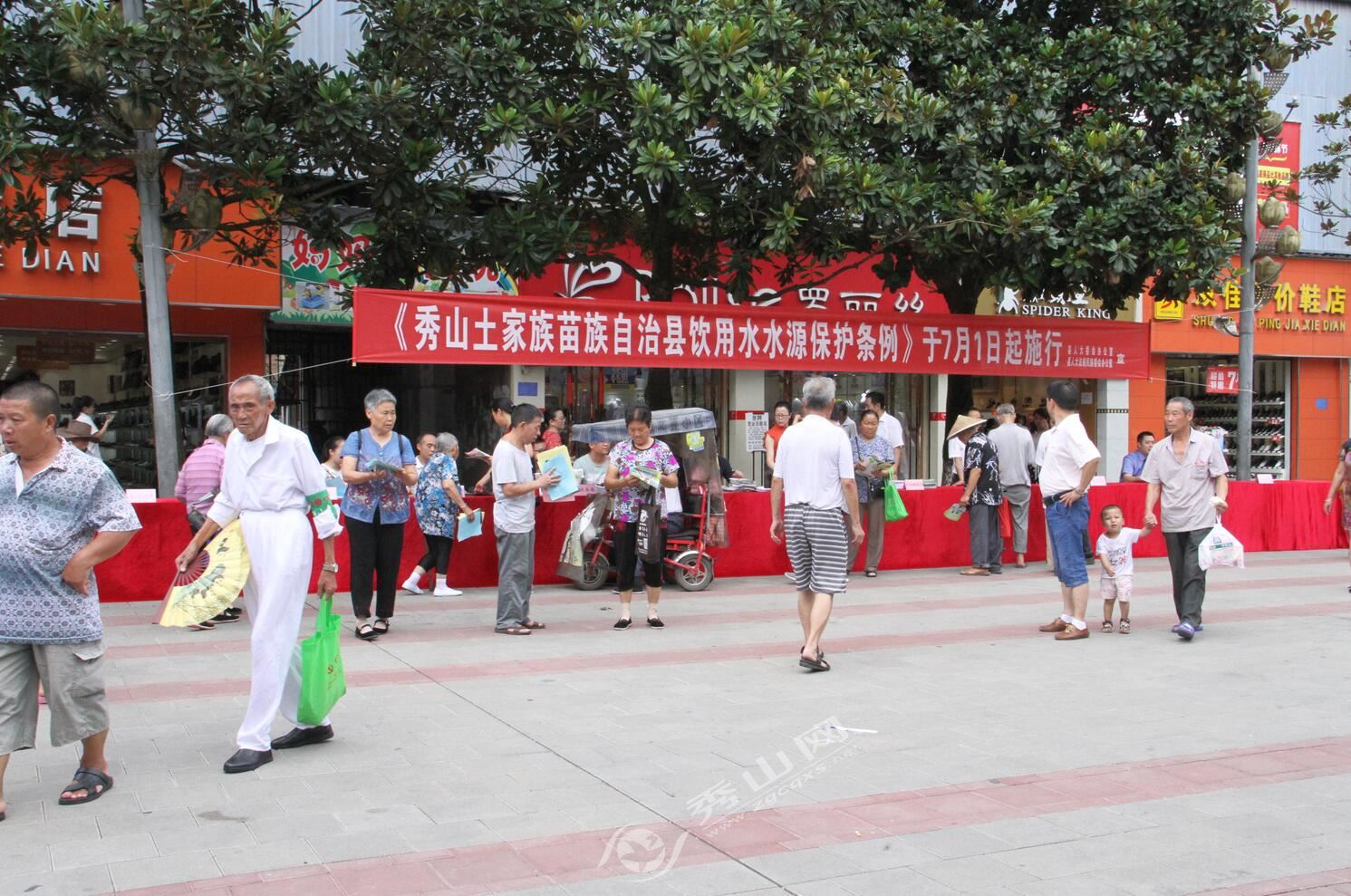 值此 《秀山土家族苗族自治縣飲用水水源保護條例》(以下簡稱《條例》)7月1日正式施行之際,為全面深入學習和宣傳貫徹《條例》,共同推進我縣飲用水水源保護管理,開創飲用水水資源保護工作新局面,各單位結合自身職能職責和群眾的現實需求,圍繞飲用水水源保護區劃分范圍、禁止行為及法律責任、監督管理體系、行政執法保護制度等宣傳重點,以發放宣傳資料、解答群眾咨詢、設置宣傳展板掛圖等形式,現場集中開展法治宣傳、法律咨詢、法律服務等活動,面對面為群眾“釋疑解惑”。